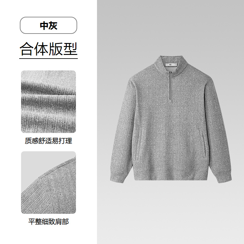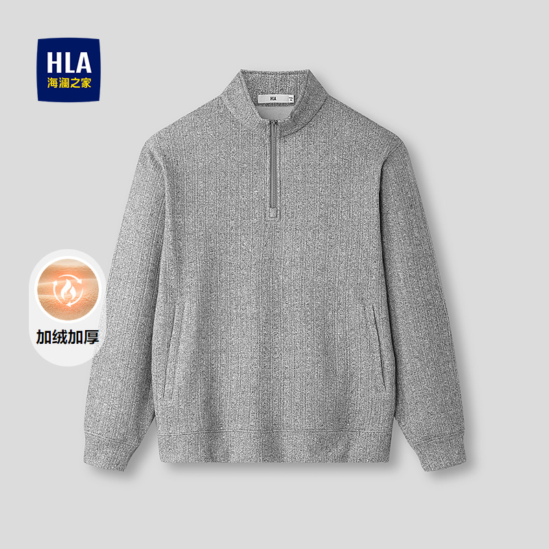 HLA海澜之家保暖卫衣2025秋冬新款加绒加厚口袋立领半开襟上衣男HNZWD4J244A