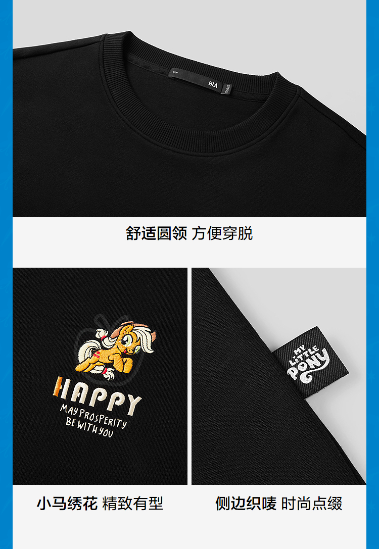 HLA海澜之家小马宝莉联名卫衣2026春秋新款圆领绣花亲子款上衣男HNZWW1F005A