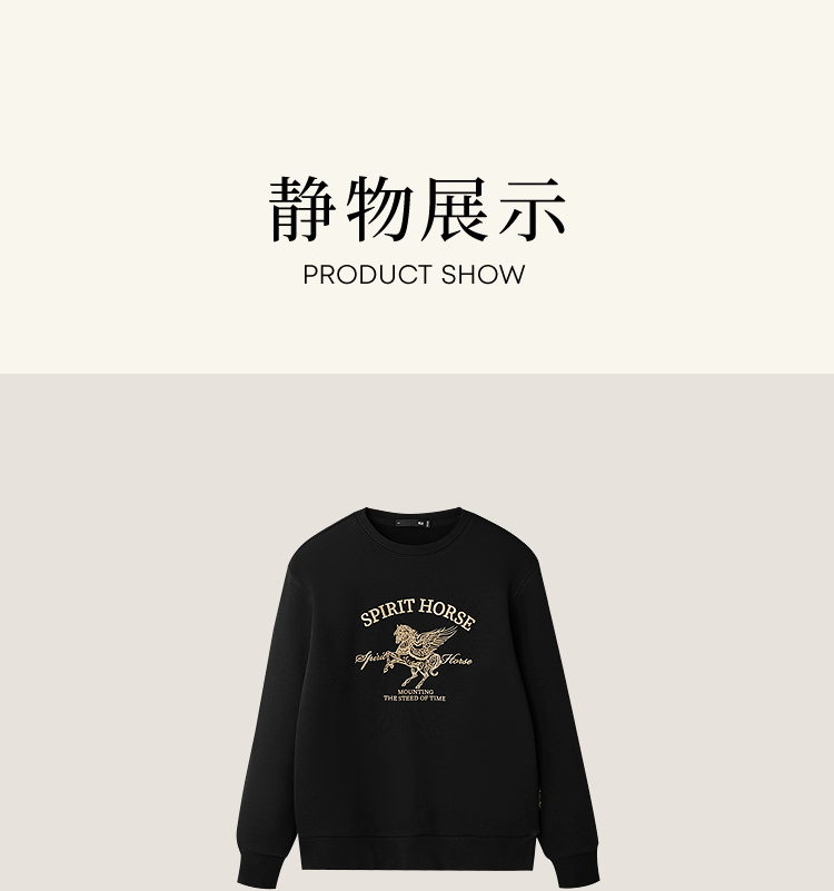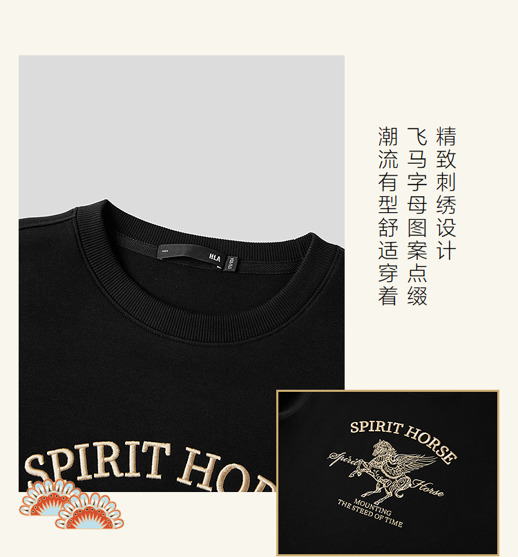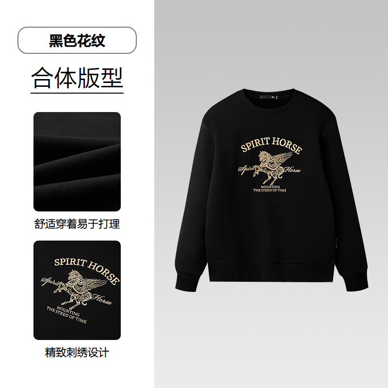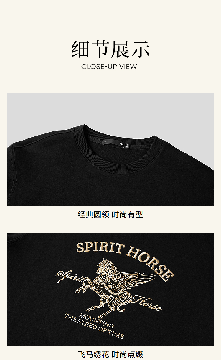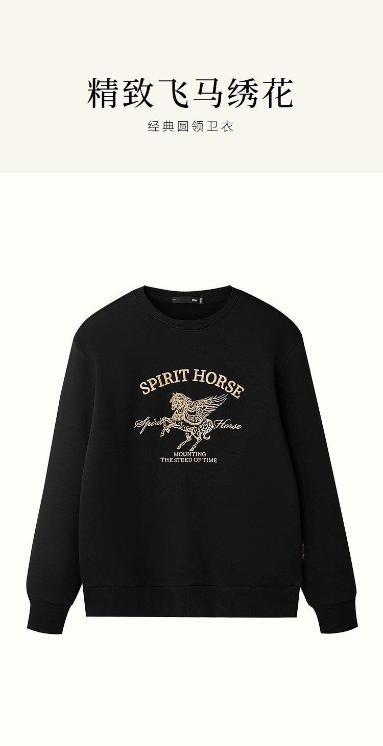 HLA海澜之家马年贺岁系列卫衣26春夏新经典精致飞马绣花长袖男HNZWW1F015A