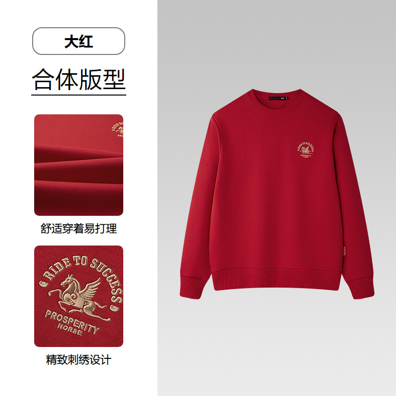 HLA海澜之家曾舜晞同款卫衣2026春秋新马年贺岁系列刺绣长袖男HNZWW1F023A