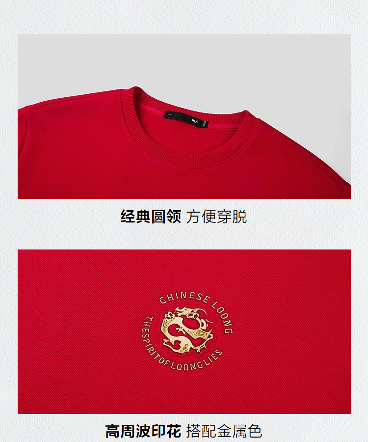 HLA海澜之家中华龙系列卫衣2026春秋新款圆领印花耐穿柔软上衣男HNZWW1F028A