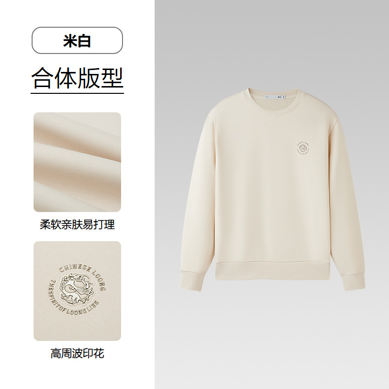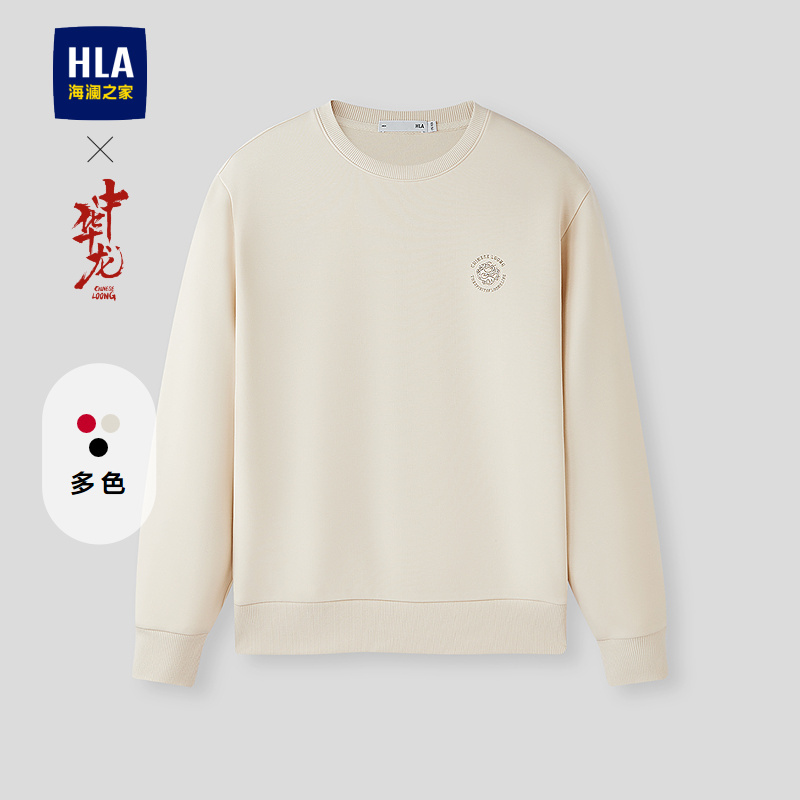 HLA海澜之家中华龙系列卫衣2026春秋新款圆领印花耐穿柔软上衣男HNZWW1F028A