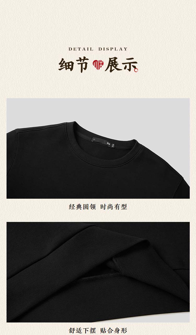 HLA海澜之家亦心即为系列卫衣2026春秋新经典圆领精致刺绣长袖男HNZWW1F029A
