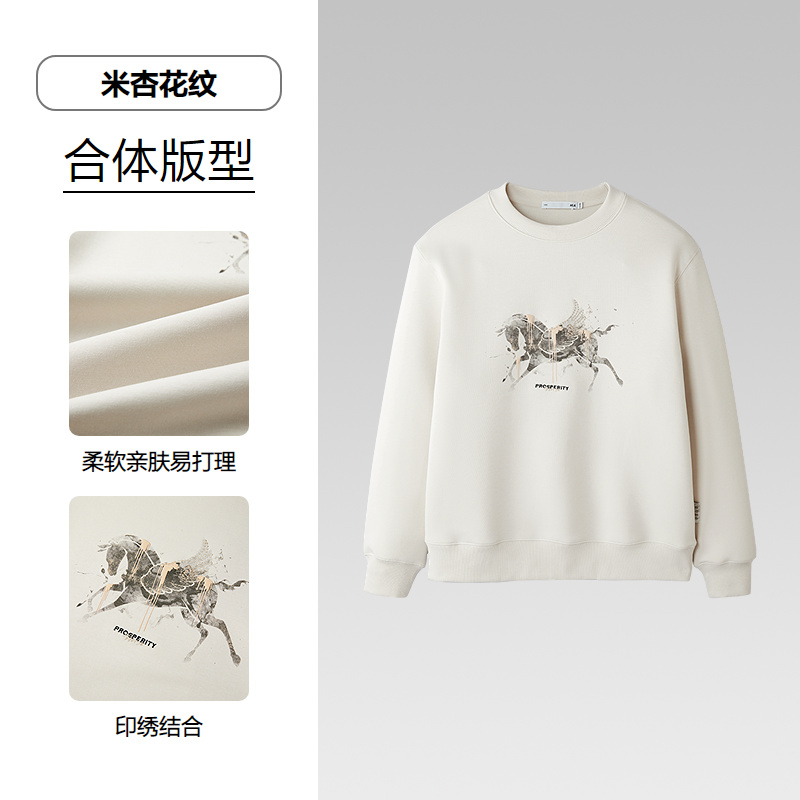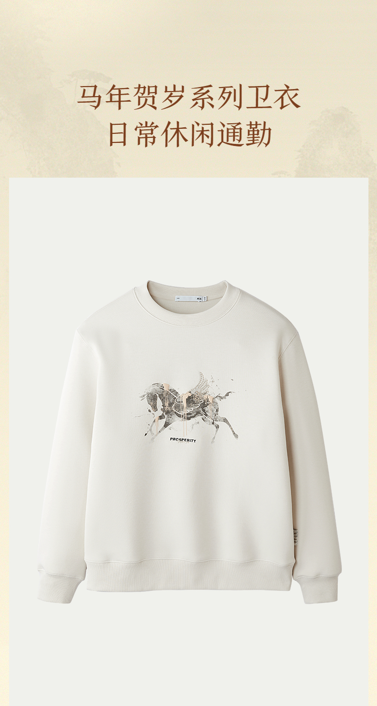 HLA海澜之家马年贺岁系列卫衣26春夏新款圆领印绣结合微弹上衣男HNZWW1F043A