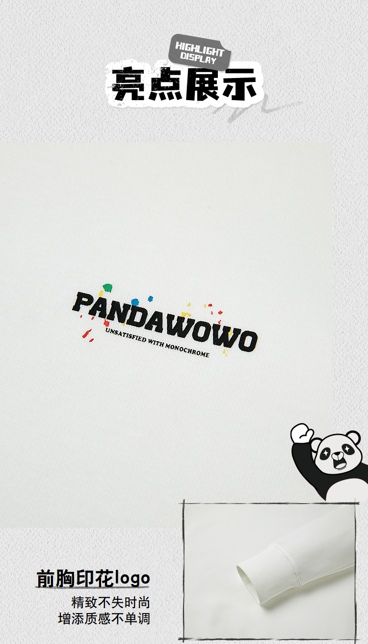HLA海澜之家panda wowo熊猫系列卫衣26春夏新圆领印花柔软上衣男HNZWW1F047A
