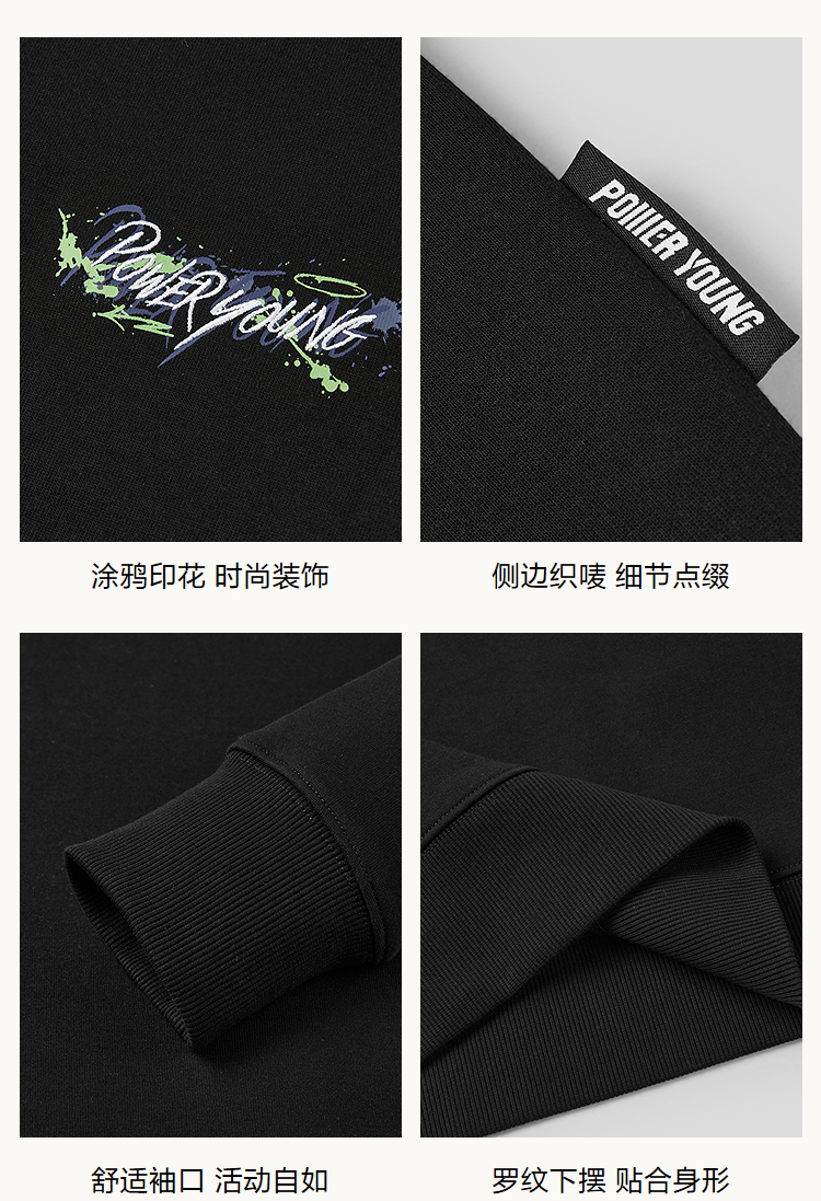 HLA海澜之家POWER YOUNG系列卫衣26春夏新印绣花柔软休闲上衣男HNZWW1F058A