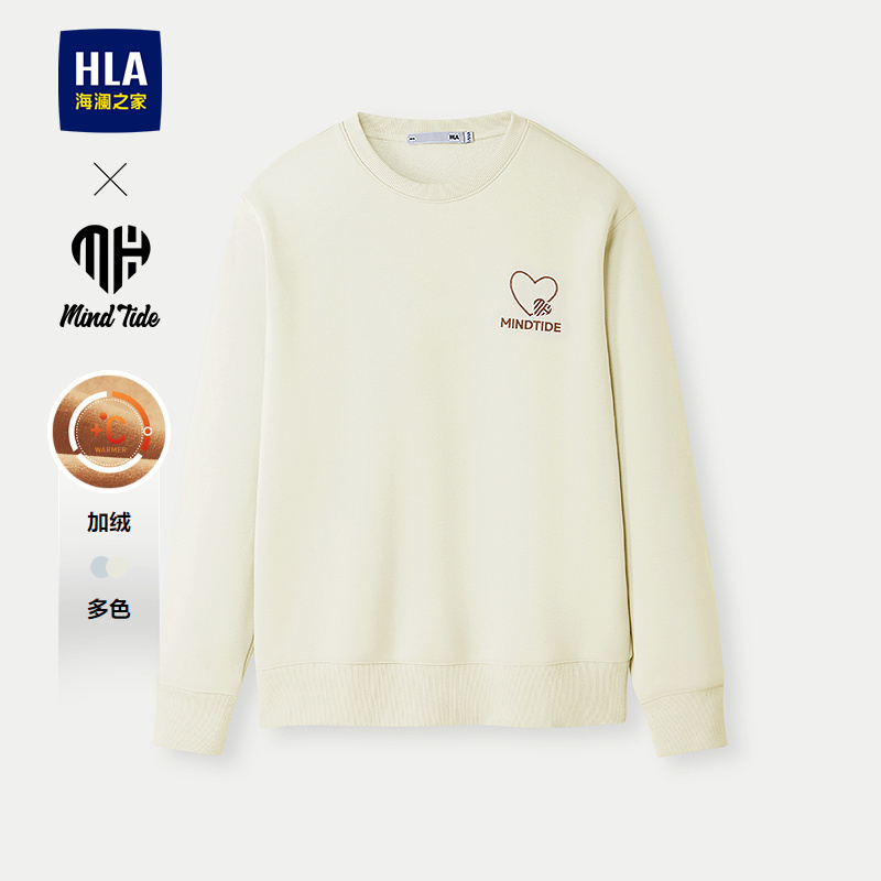 HLA海澜之家亦心即为系列卫衣25秋冬新款圆领加绒趣味绣花长袖男HNZWW4J099A