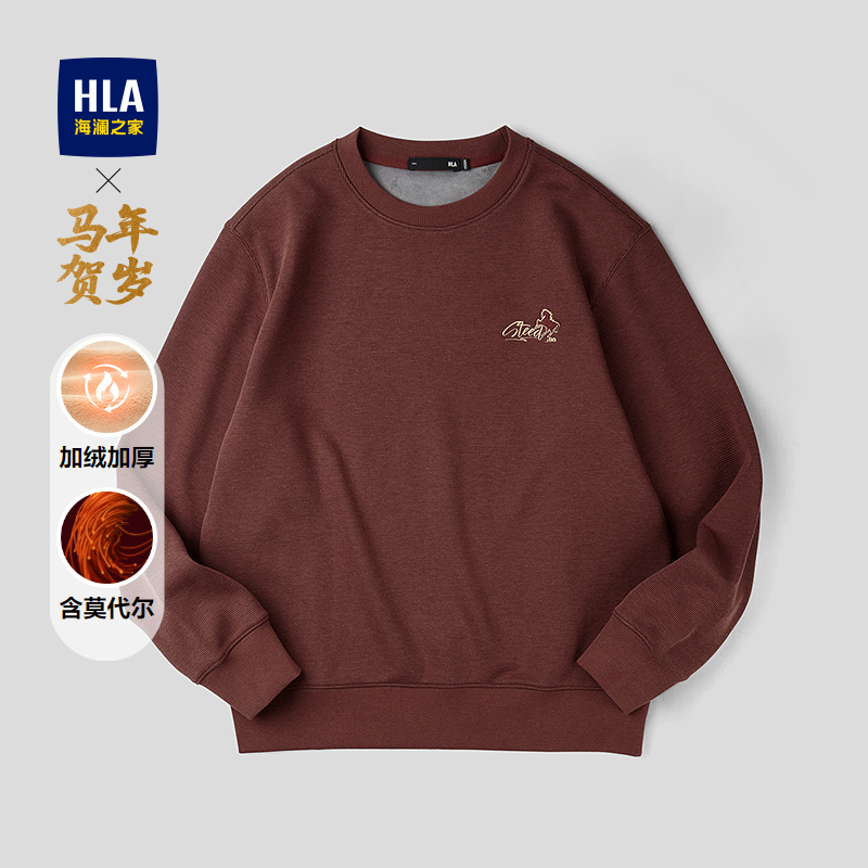 HLA海澜之家马年贺岁系列卫衣25秋冬新加绒加厚刺绣保暖长袖男HNZWW4J105A
