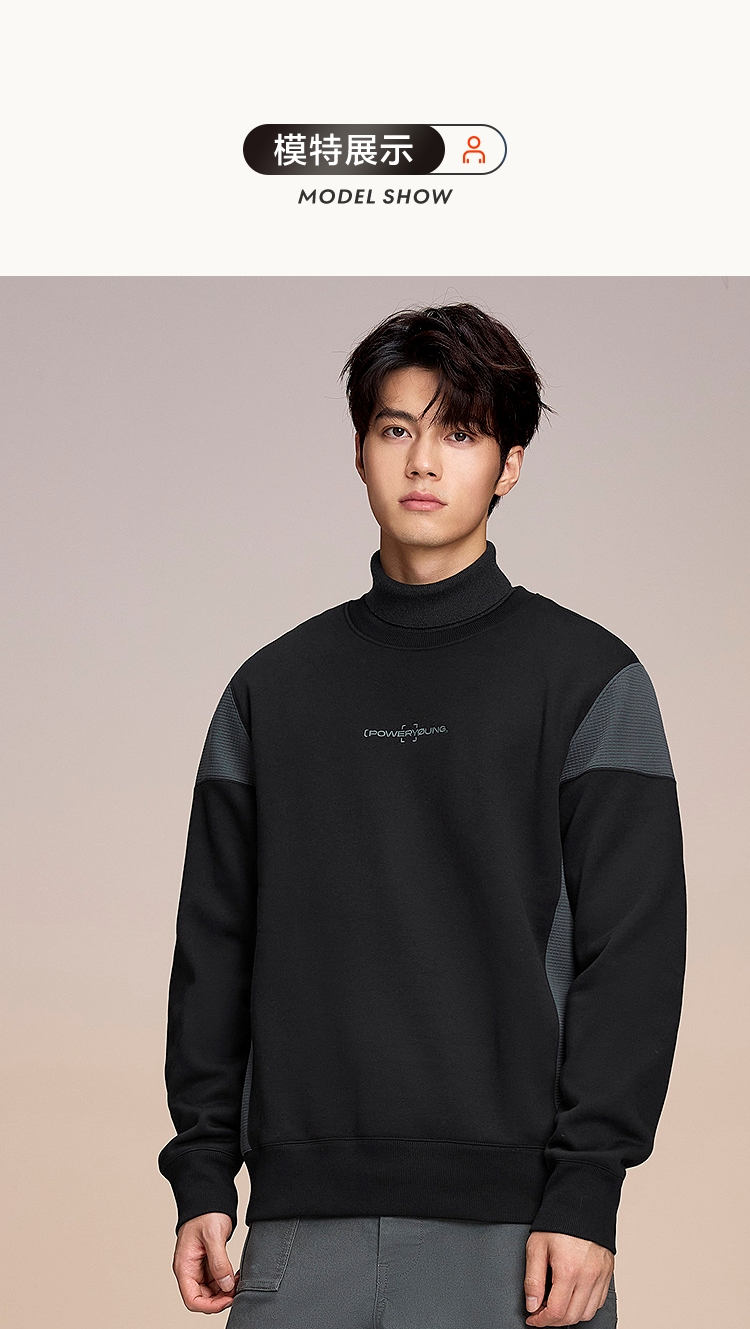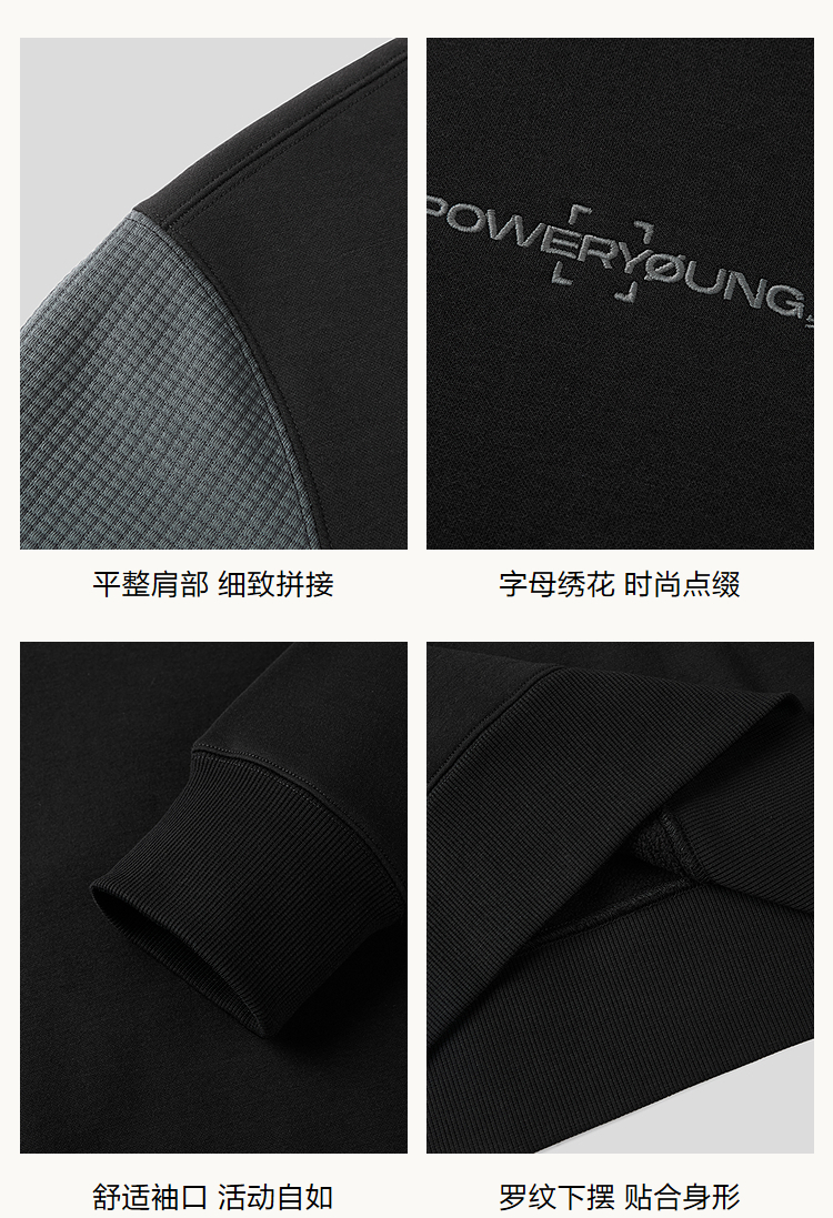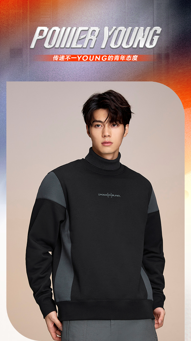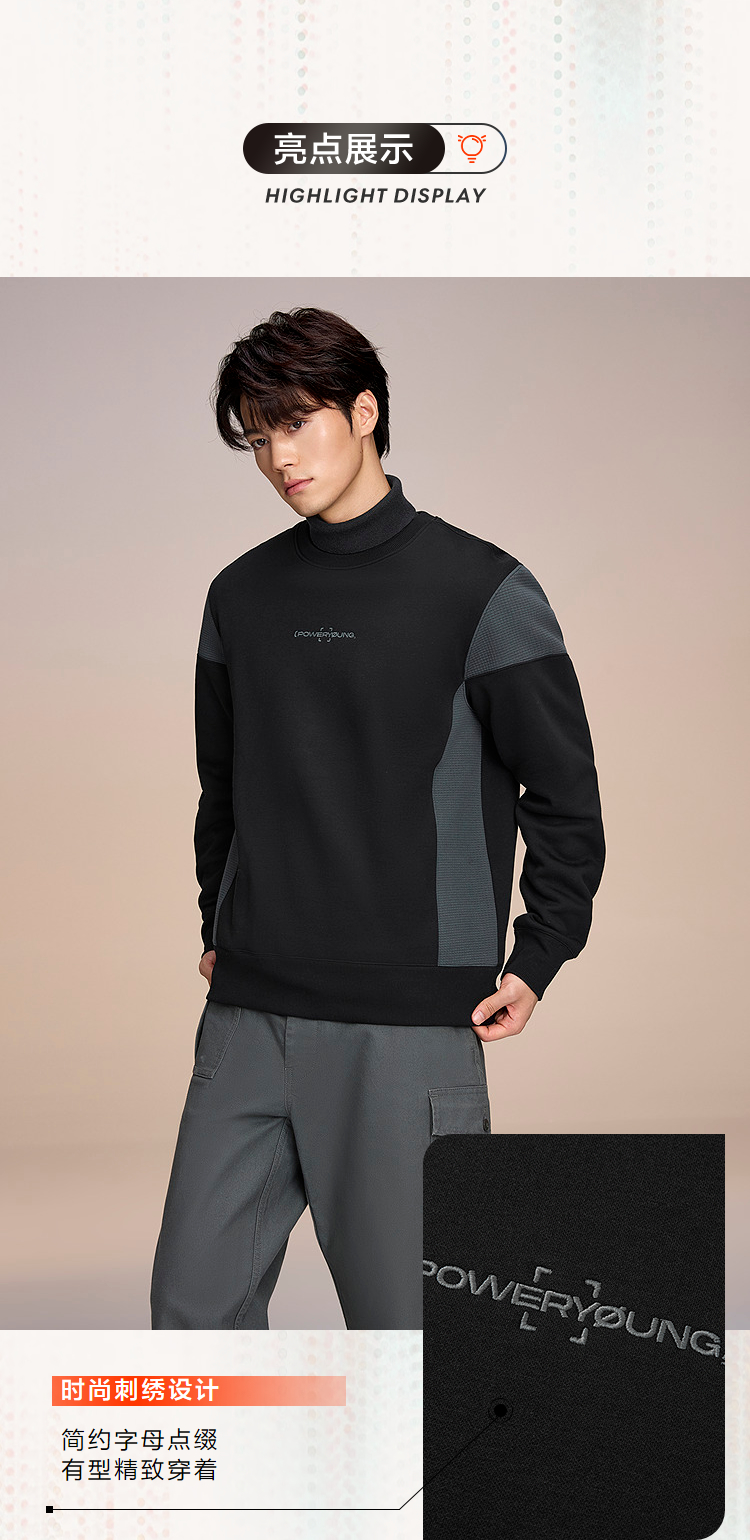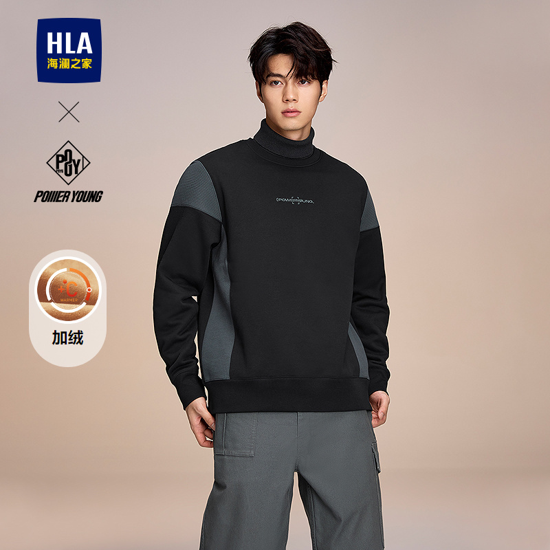 HLA海澜之家POWER YOUNG系列卫衣25秋冬新款圆领加绒绣花上衣男HNZWW4J107A