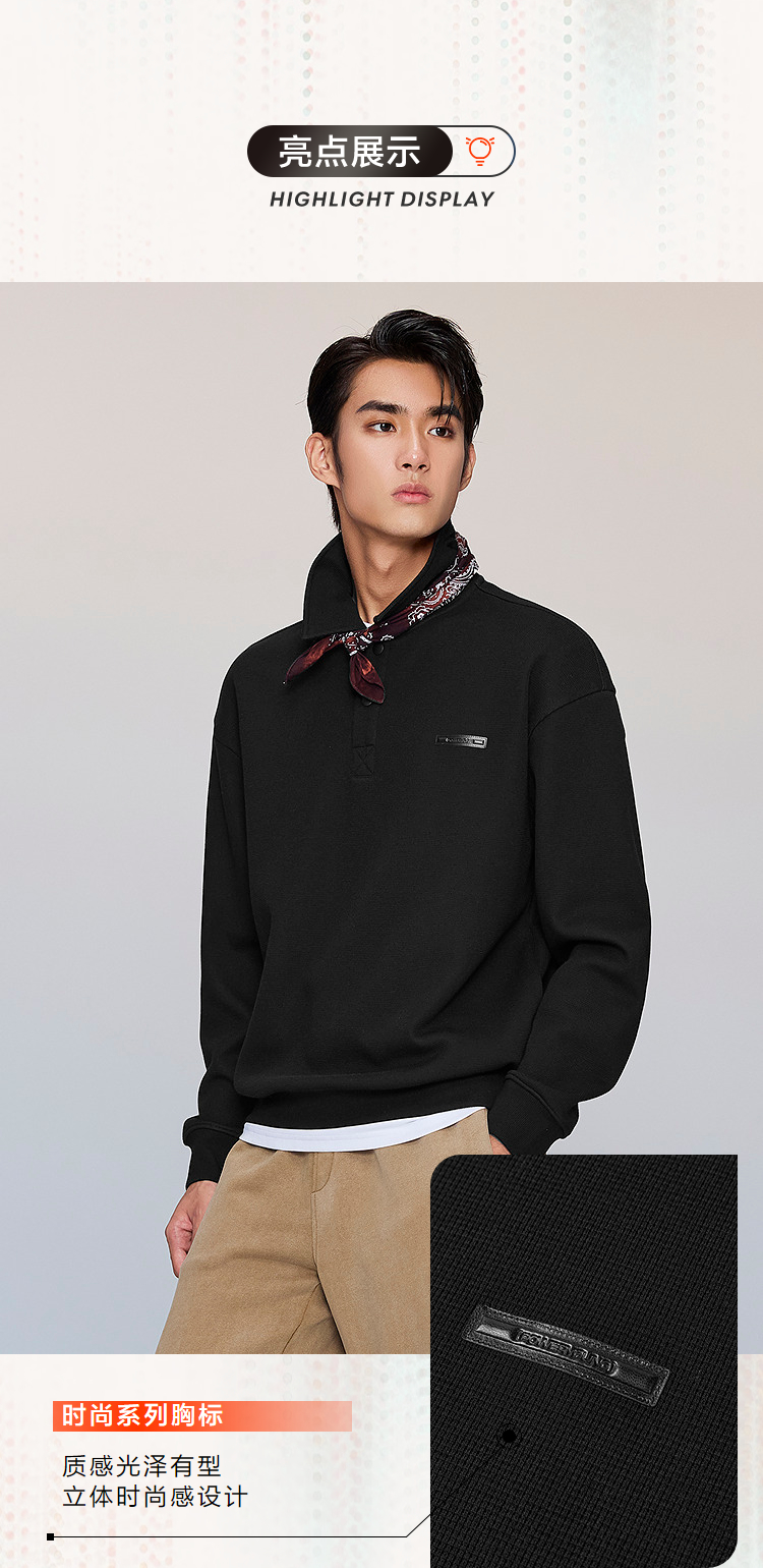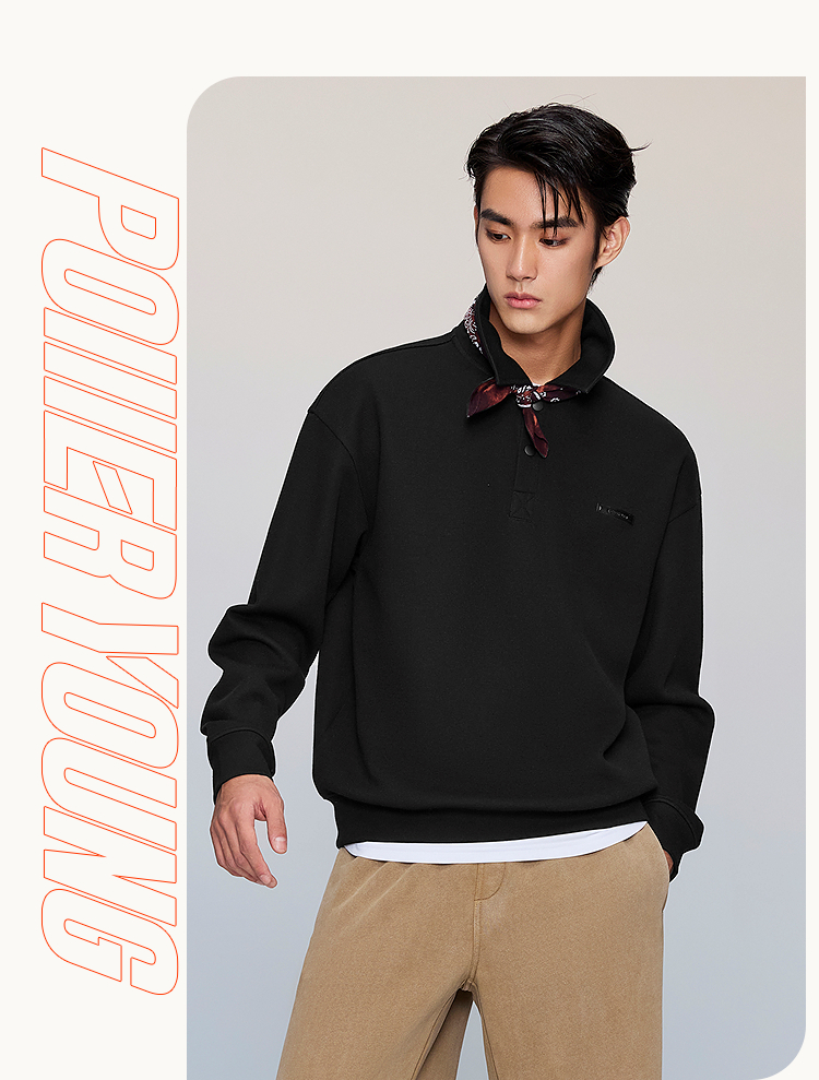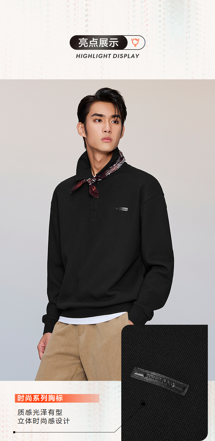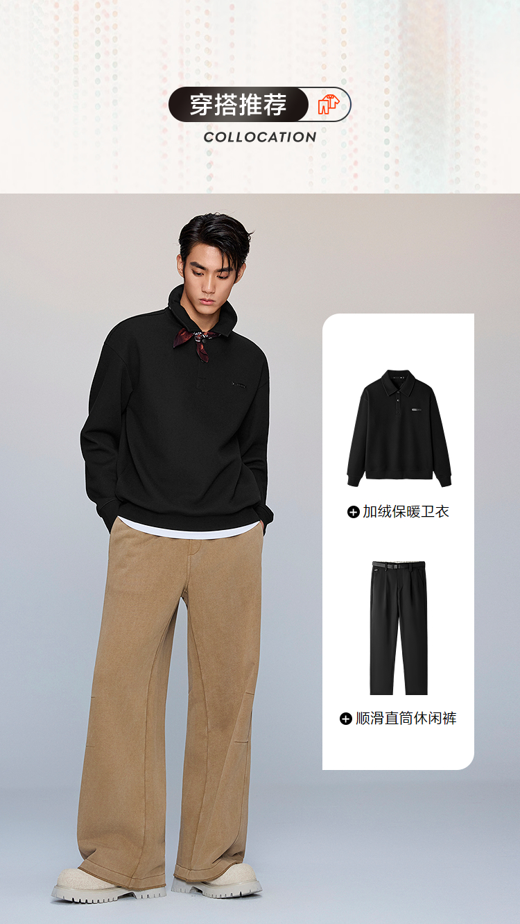 HLA海澜之家POWER YOUNG系列卫衣25秋冬新款翻领加绒保暖上衣男HNZWW4J117A