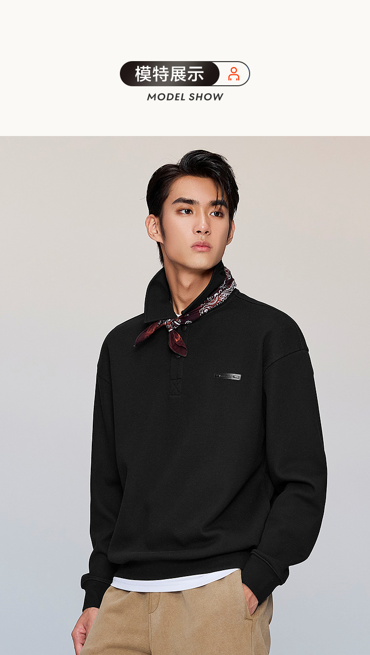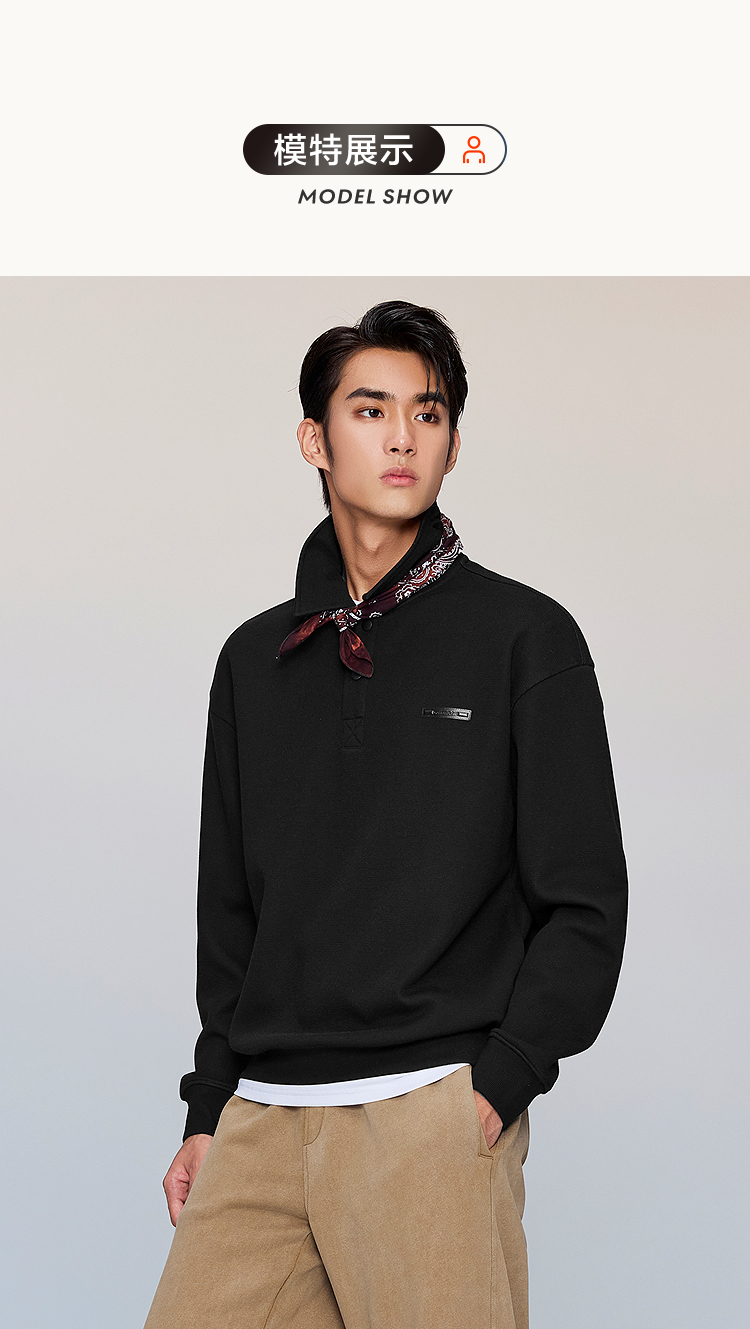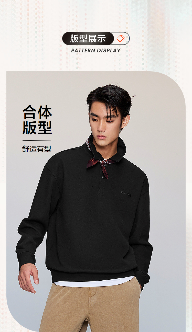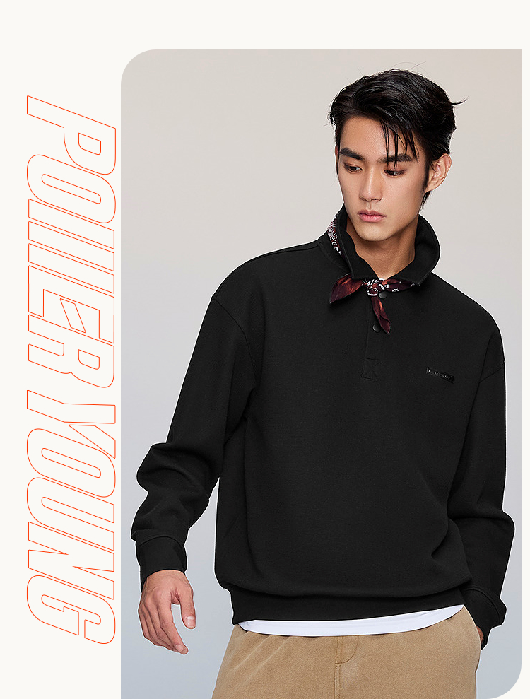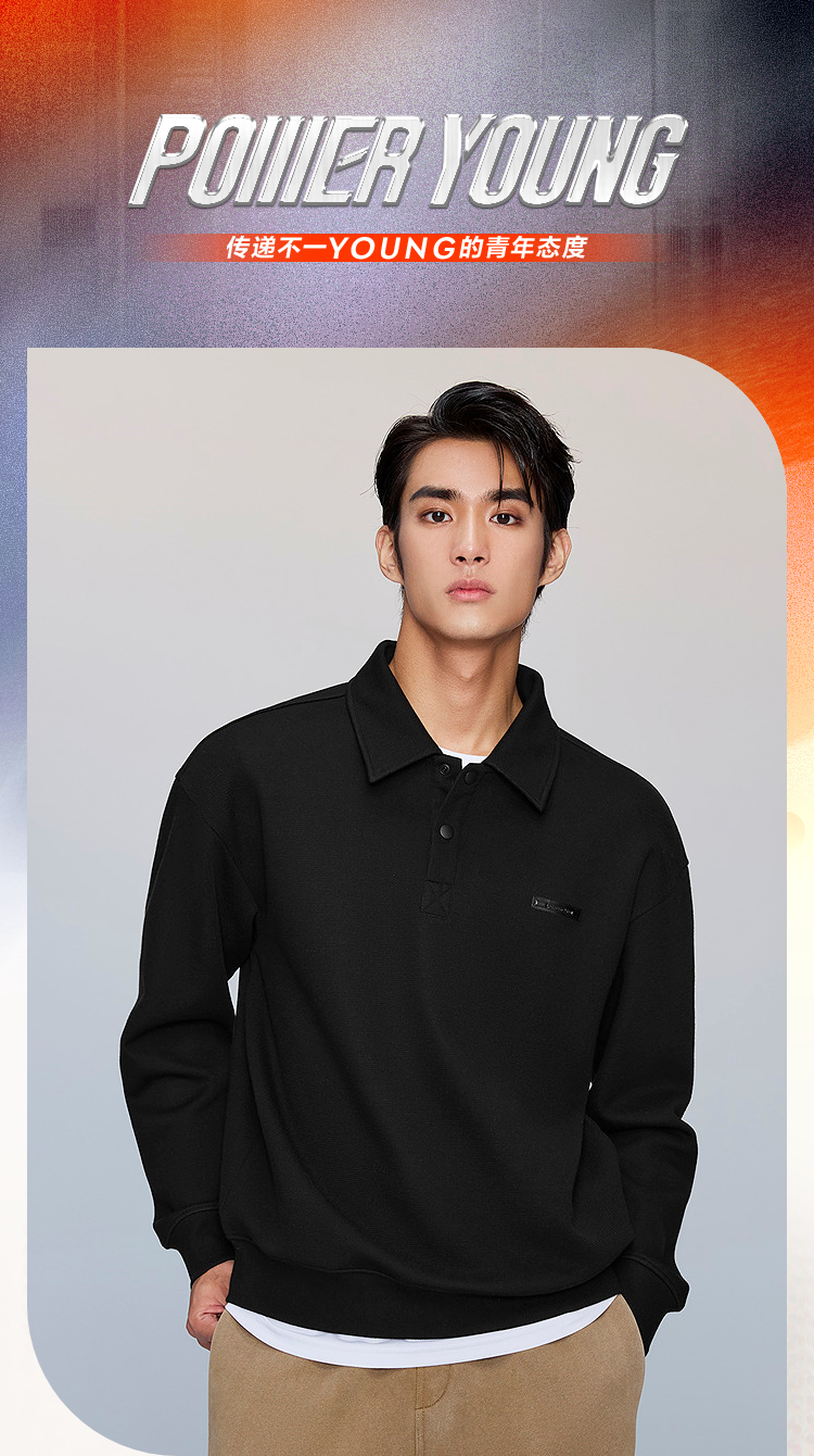 HLA海澜之家POWER YOUNG系列卫衣25秋冬新款翻领加绒保暖上衣男HNZWW4J117A