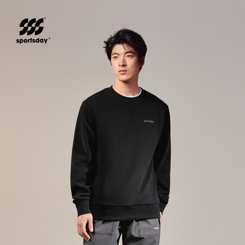 运动sportsday卫衣秋冬加绒保暖圆领刺绣长袖男