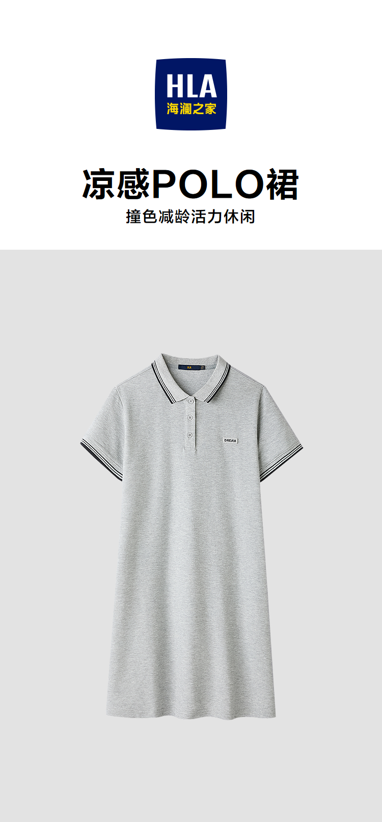 HLA海澜之家凉感减龄活力POLO裙26春夏新款显瘦气质短袖裙子女装HQLBD2F001A