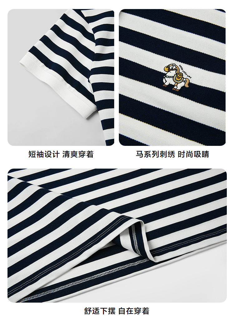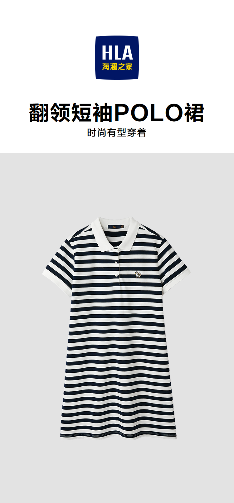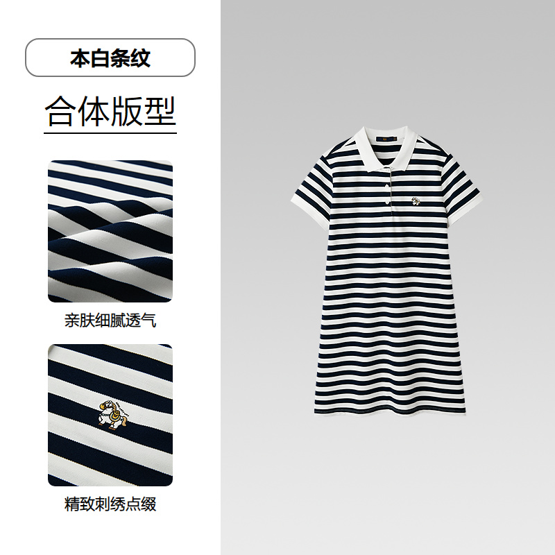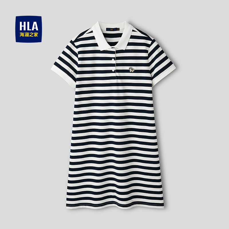 HLA海澜之家马年贺岁系列条纹翻领POLO裙26春夏新刺绣连衣裙女装HQLBD2F003A