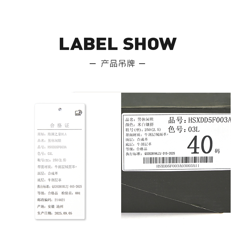 HLA海澜之家抽绳系带休闲鞋26新款轻便透气时尚运动平跟德训鞋男HSXDD5F003A