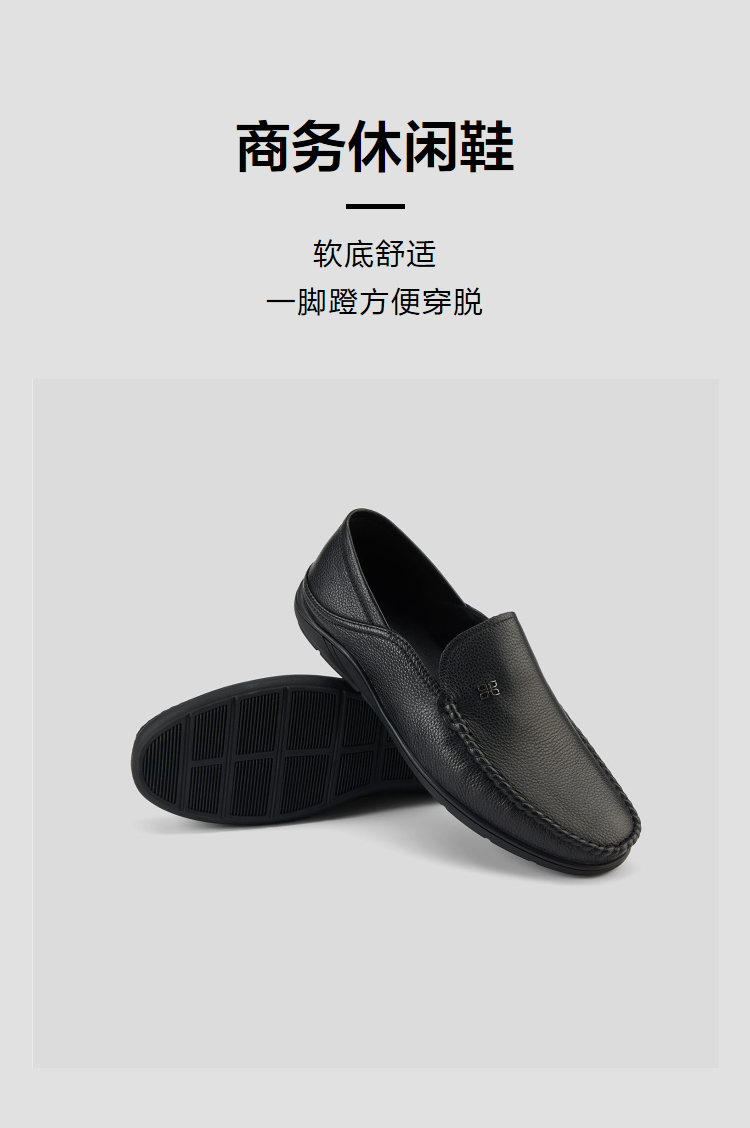 HLA海澜之家舒适休闲皮鞋2026新款商务一脚蹬时尚软底乐福鞋子男HSXDD5F004A