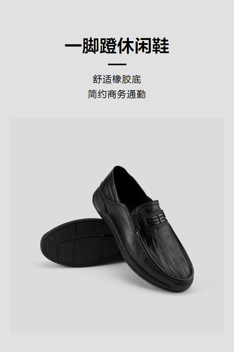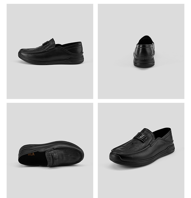 HLA海澜之家一脚蹬休闲鞋2026新款商务舒适羊皮革牛皮革皮鞋子男HSXDD5F019A