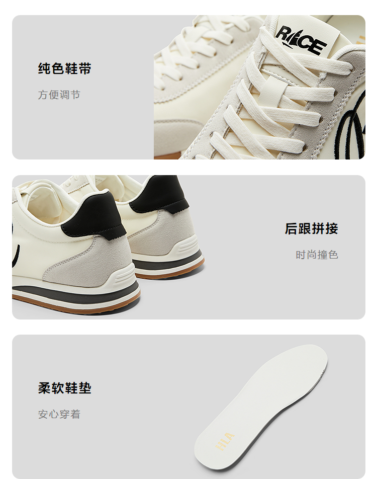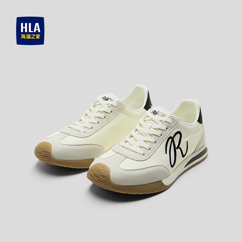HLA海澜之家运动休闲鞋2026新款圆头系带透气拼色时尚阿甘鞋男HSXDD5F027A