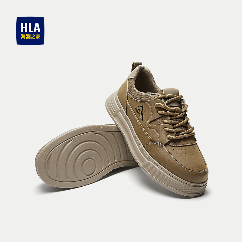 HLA海澜之家系带休闲鞋2025新款轻便透气舒适运动平跟板鞋男HSXDD6J087A