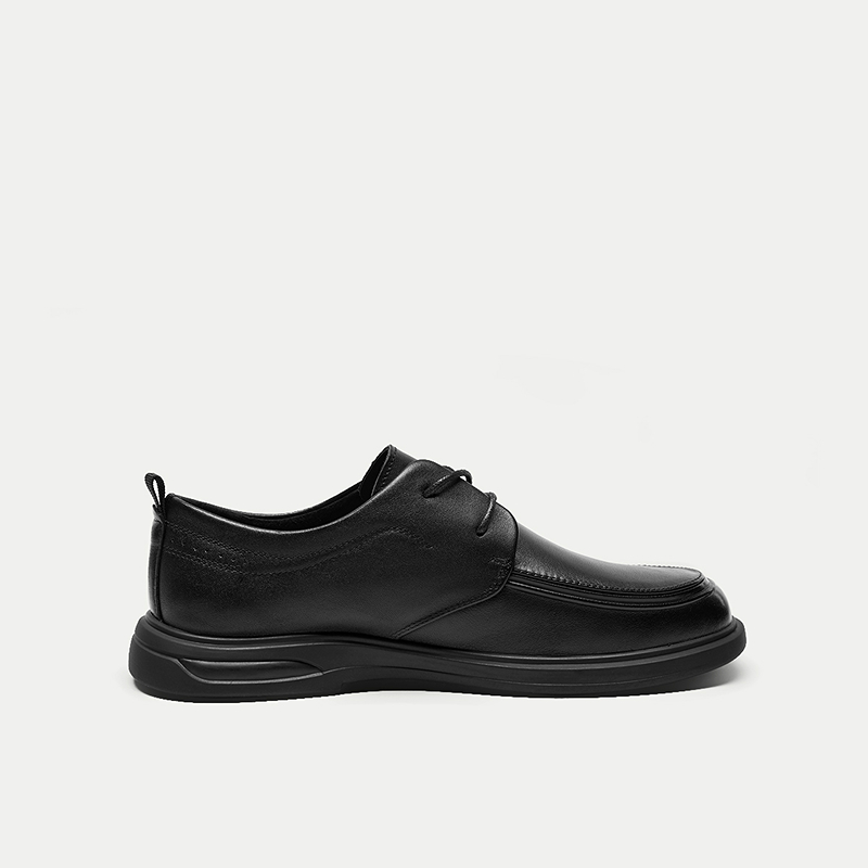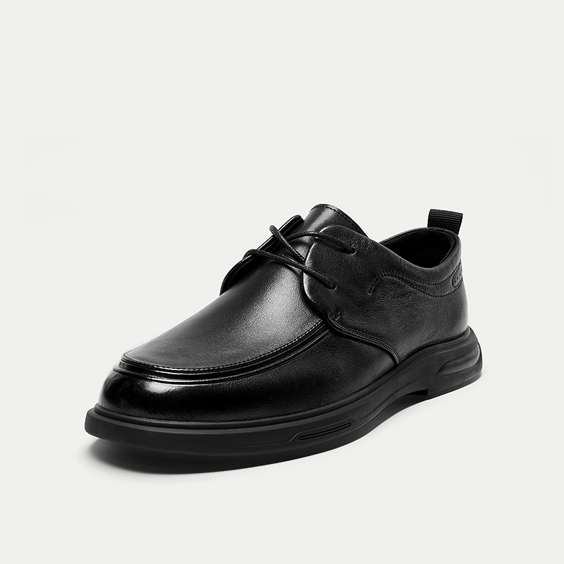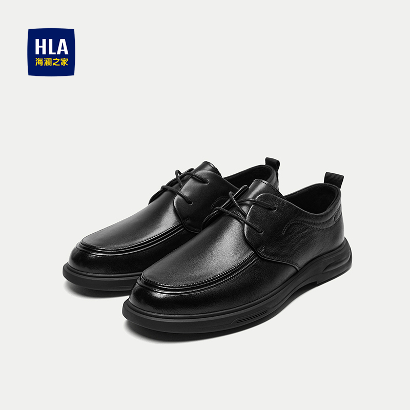 HLA海澜之家透气休闲鞋2025新款圆头系带橡胶底休闲皮鞋男HSXDD6J091A