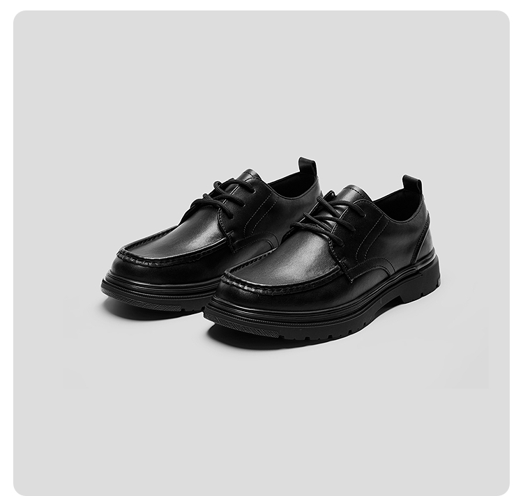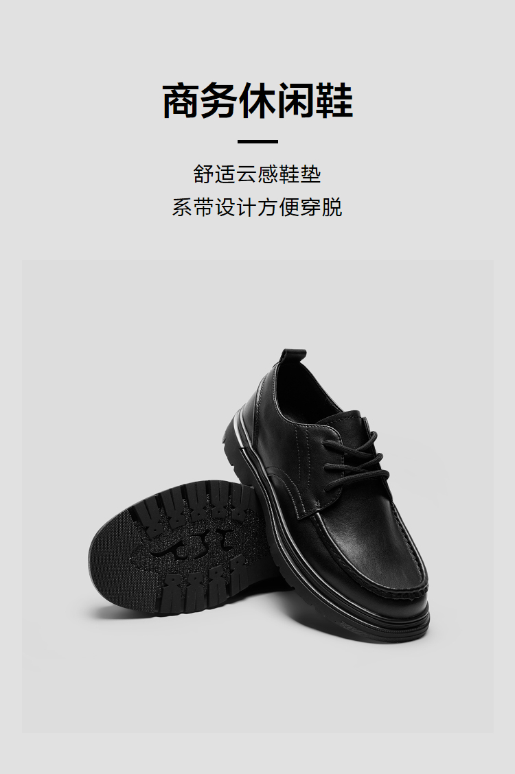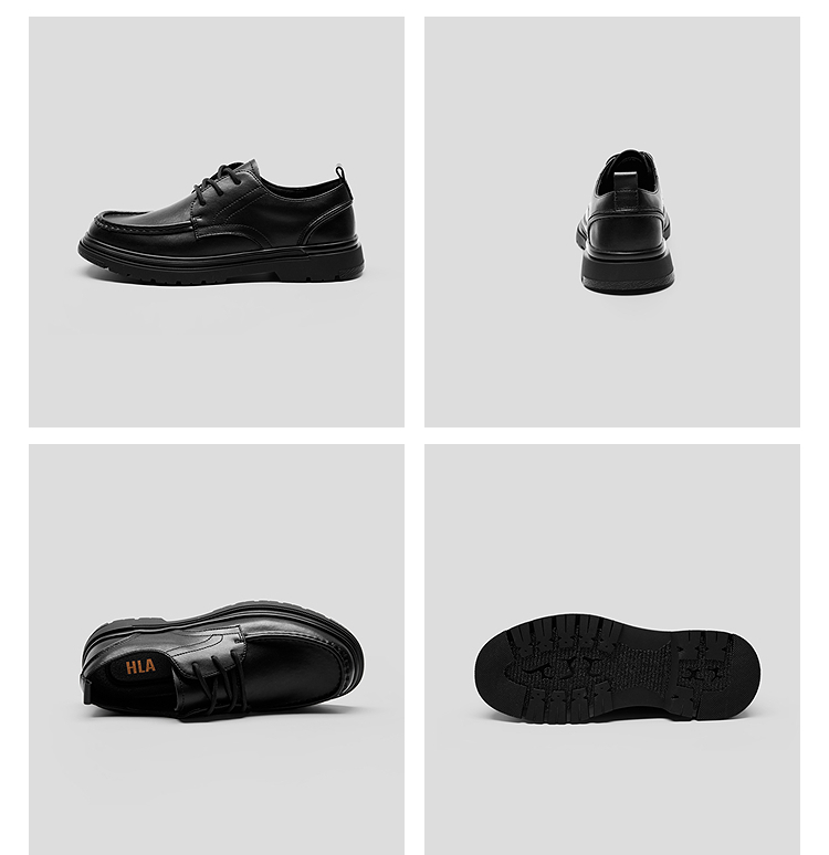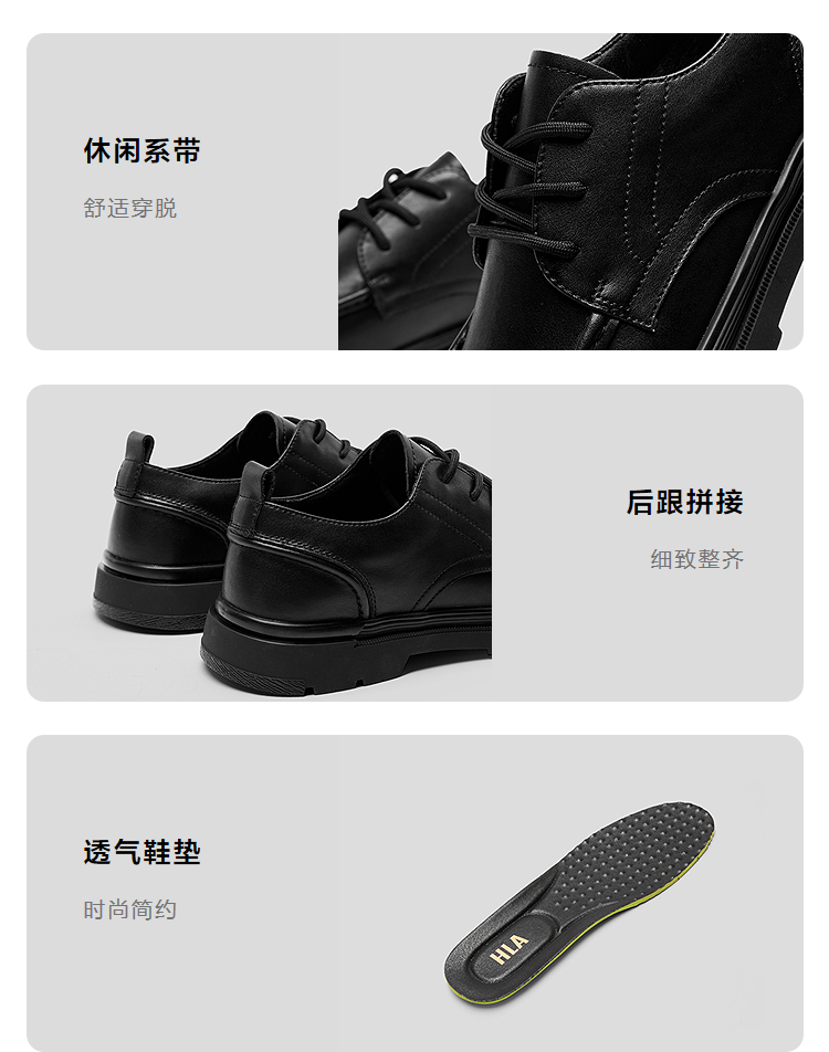 HLA海澜之家舒适平跟系带休闲皮鞋25新款商务云感鞋垫通勤鞋子男HSXDD6J120A