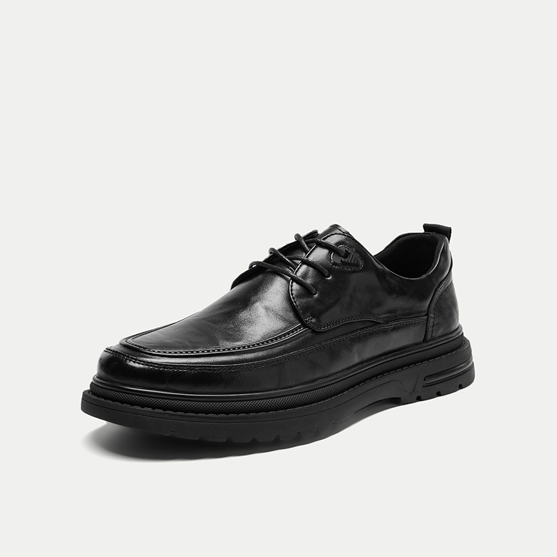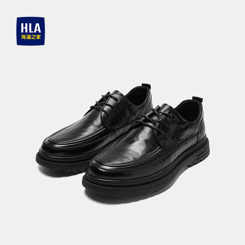 HLA海澜之家舒适平跟系带休闲皮鞋25新款商务云感鞋垫时尚鞋子男HSXDD6J123A