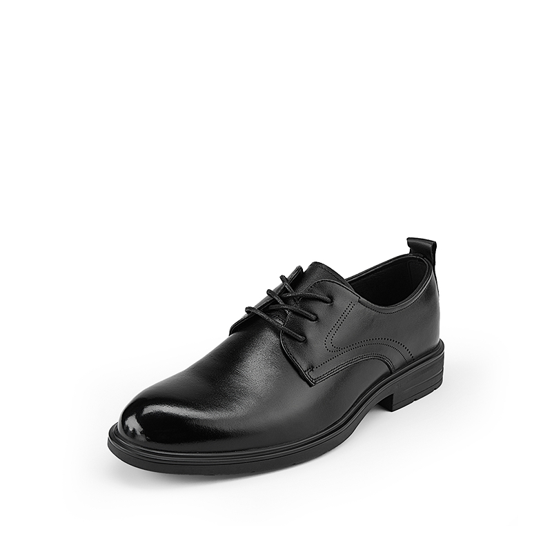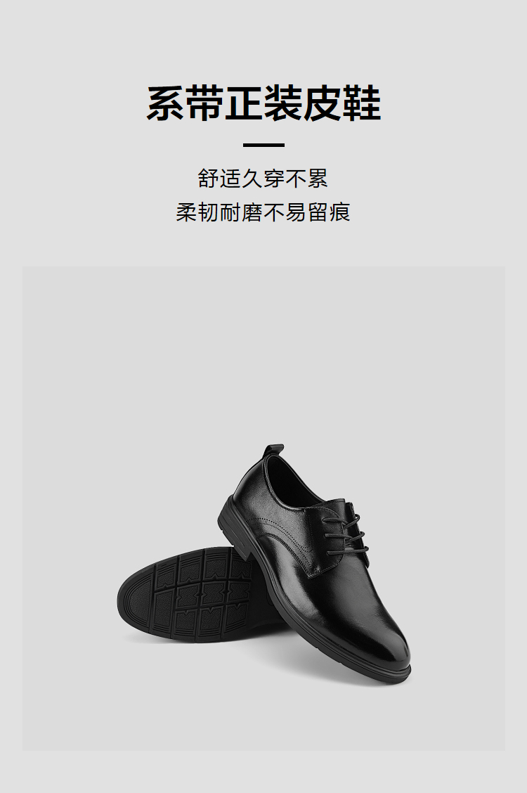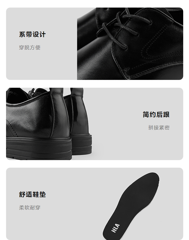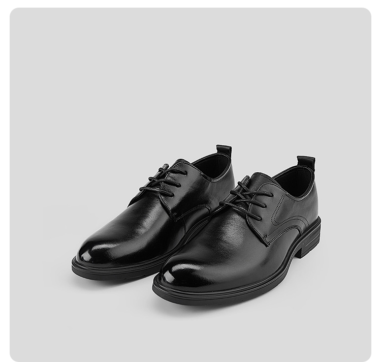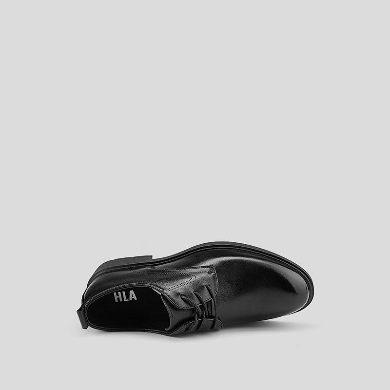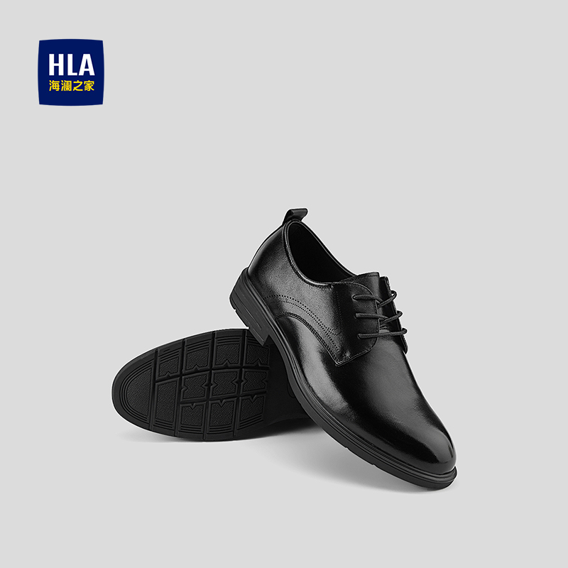 HLA海澜之家圆头系带正装皮鞋2026新款平跟商务牛皮革耐磨鞋子男HSXSD5F005A