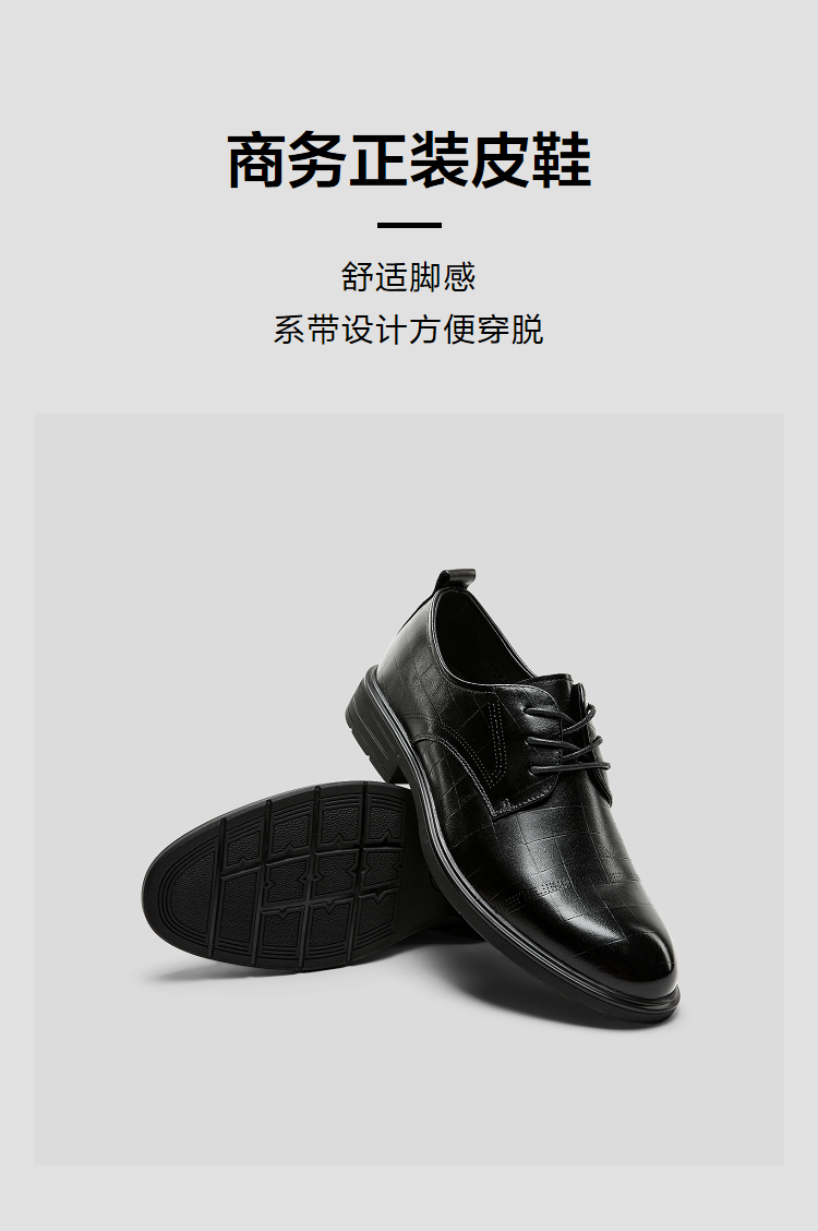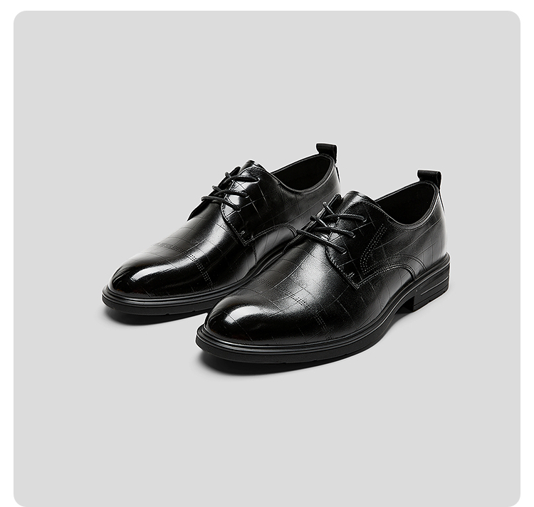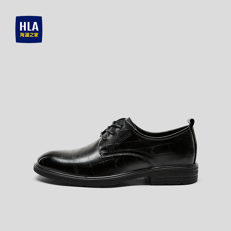 HLA海澜之家系带正装皮鞋2026新款商务通勤时尚格纹德比鞋子男HSXSD5F006A