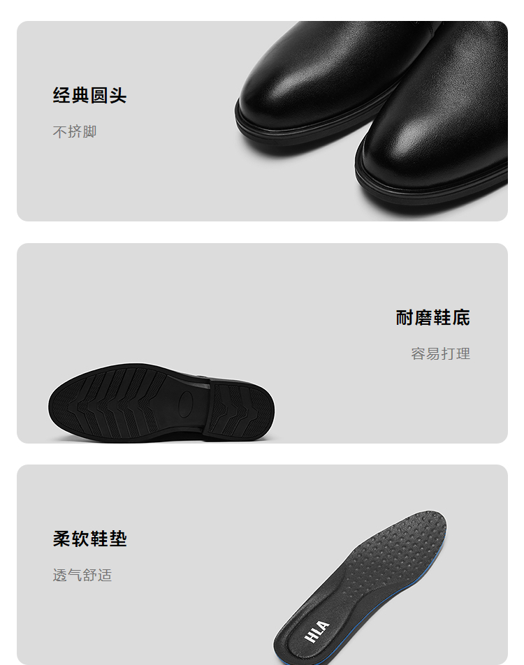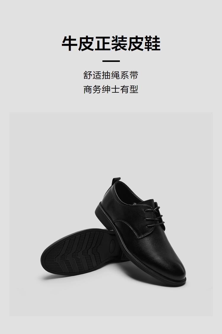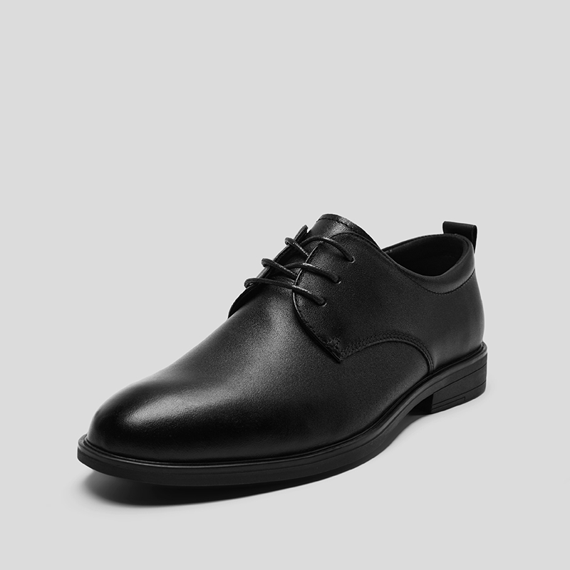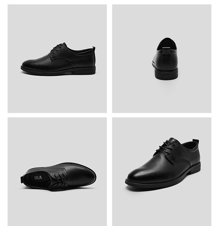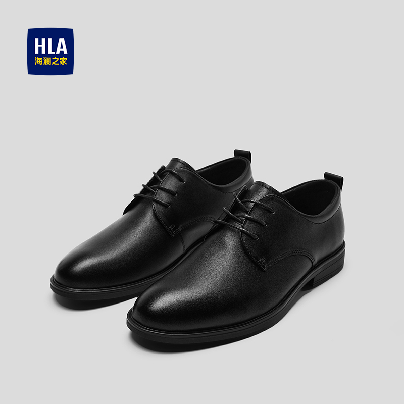HLA海澜之家头层牛皮正装皮鞋25新款抽绳系带商务通勤透气鞋子男HSXSD5F013A