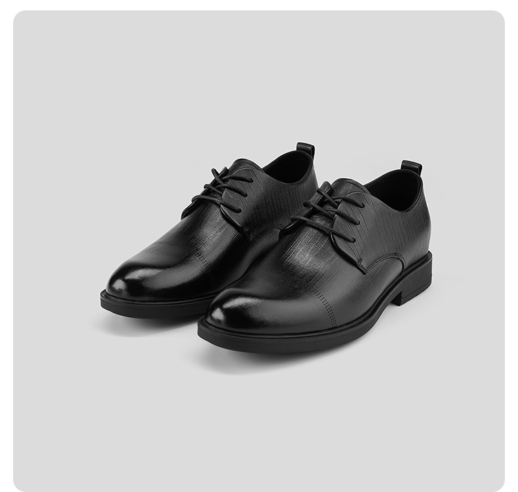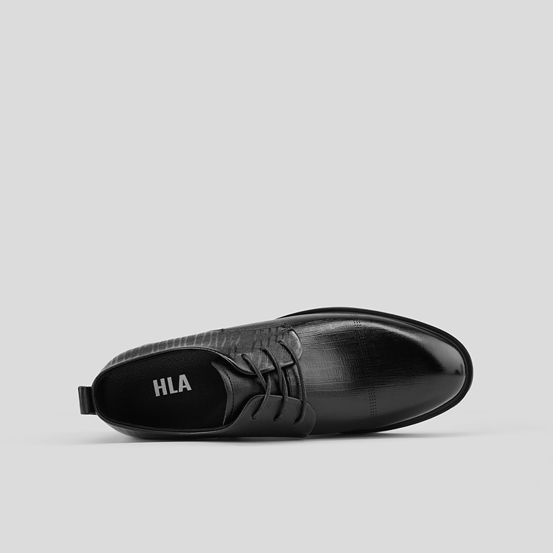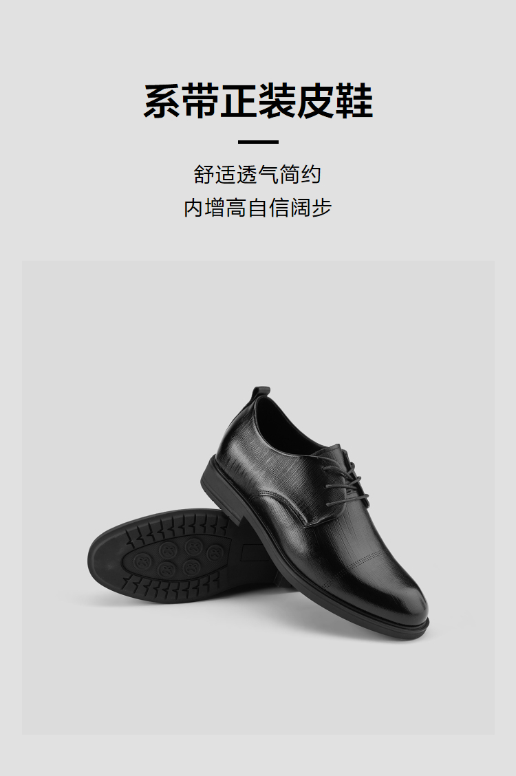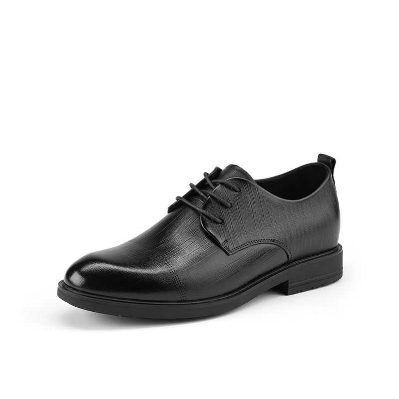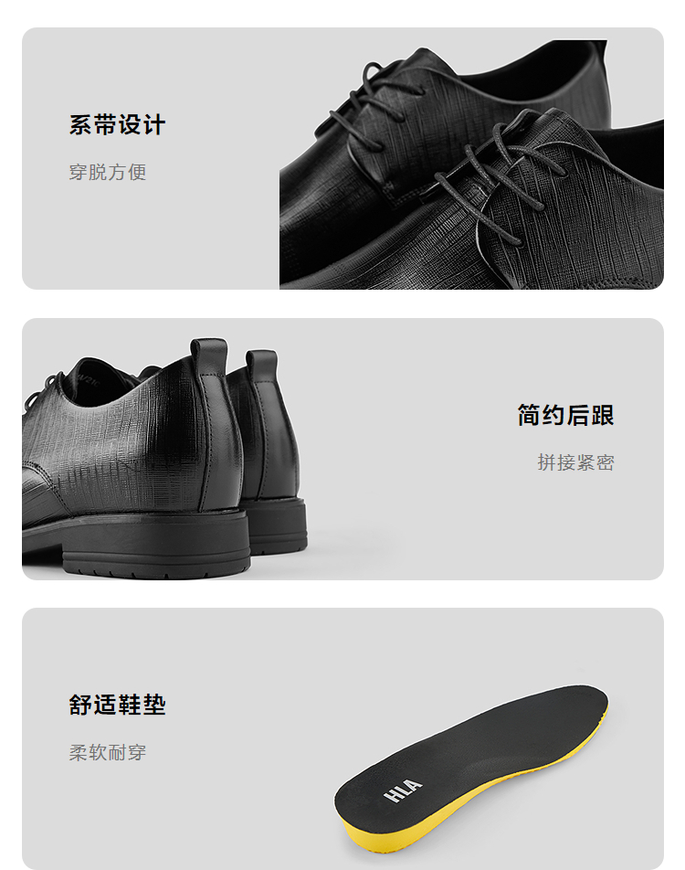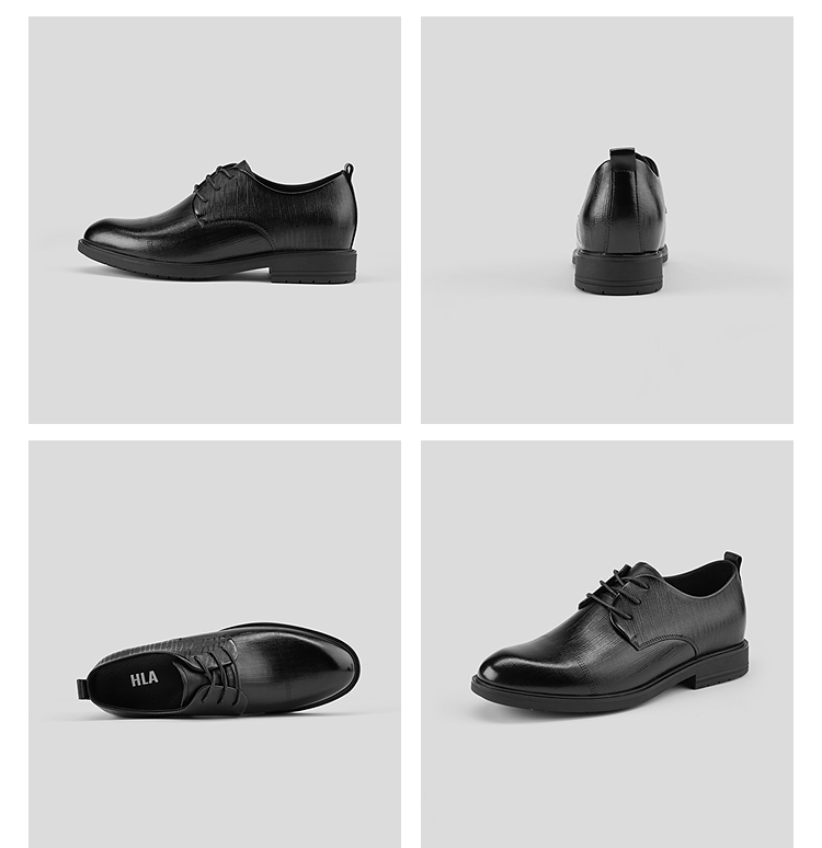HLA海澜之家圆头系带正装皮鞋26新款平跟商务牛皮革内增高鞋子男HSXSD5F021A