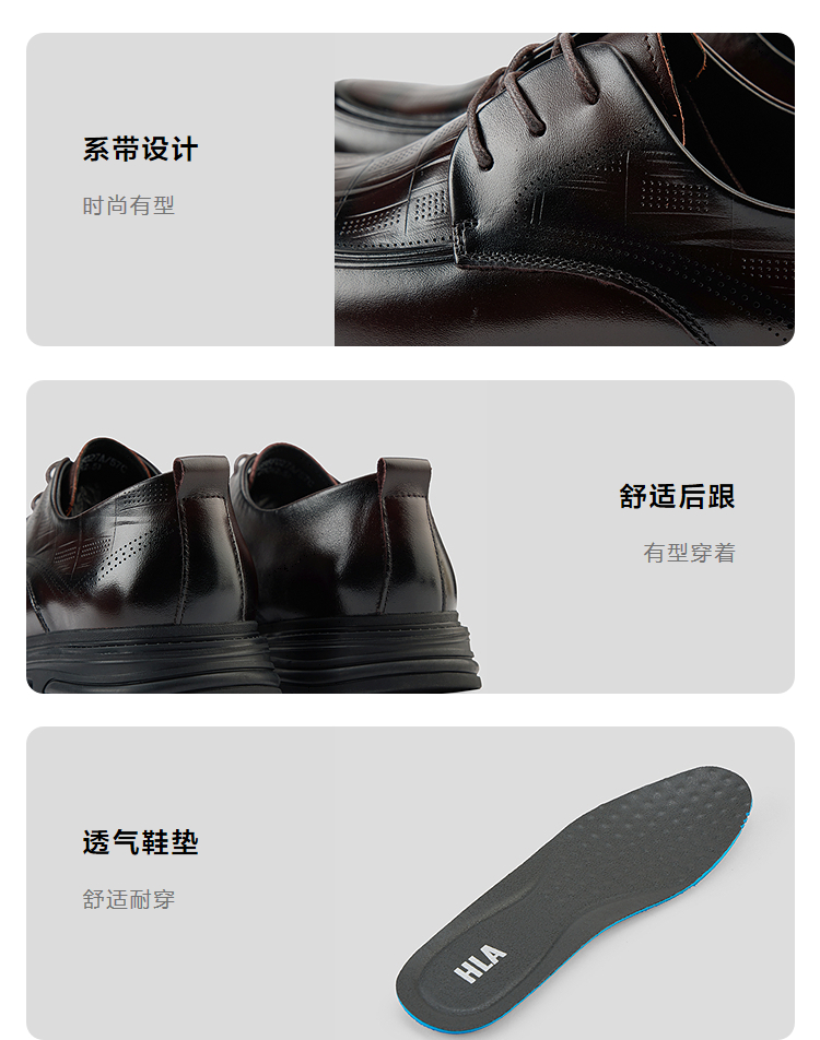 HLA海澜之家系带正装皮鞋2026新款舒适柔软透气耐穿光泽质感男鞋HSXSD5F027A