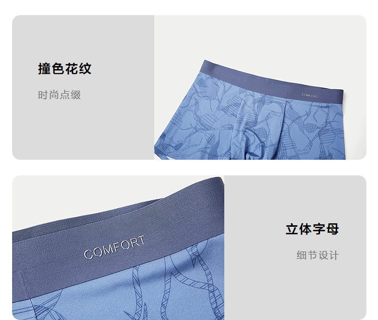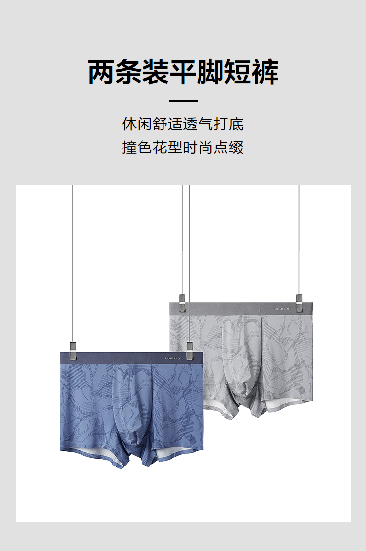 HLA海澜之家两条装针织平脚短裤26新时尚花型印花弹力透气内裤男HUKAJ5F020A