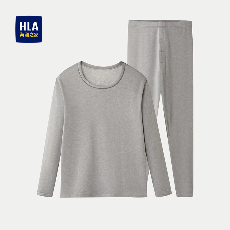 HLA海澜之家含桑蚕丝内衣套装2025新圆领纯色磨毛保暖弹力内衣男HUTAD4J028A