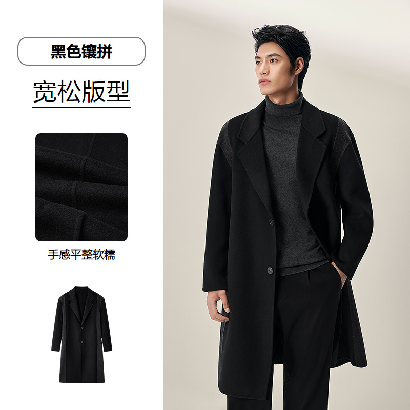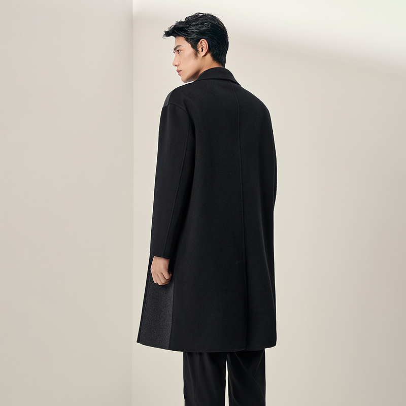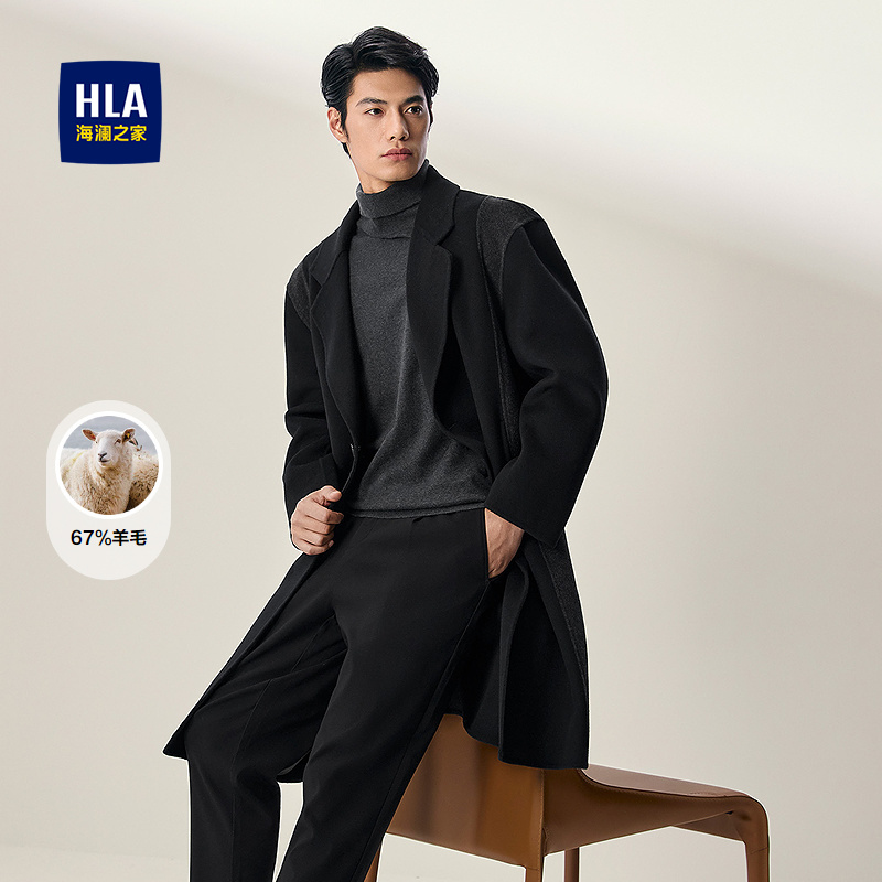 HLA海澜之家含羊毛大衣2025秋冬新款双面呢长款西装领廓形外套男HWDAD4J015A