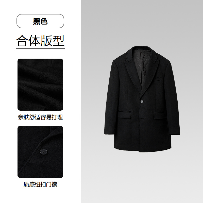 HLA海澜之家纯羊毛大衣2025秋冬新款大气戗驳领稍厚保暖外套男HWDAD4J018A