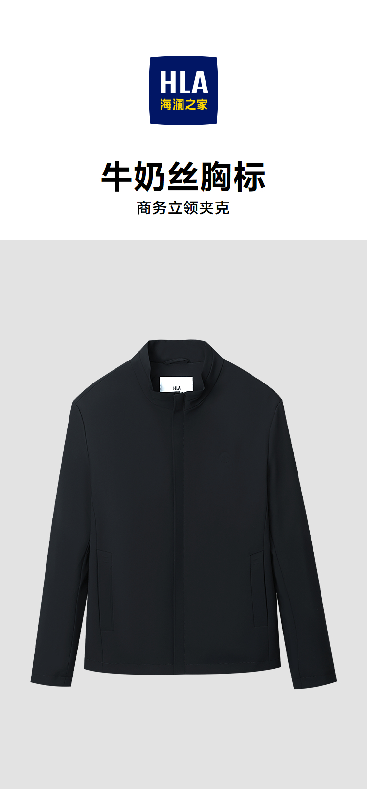 HLA海澜之家商务夹克2026春夏新款立领微弹牛奶丝精致胸标外套男HWJAD1F001A