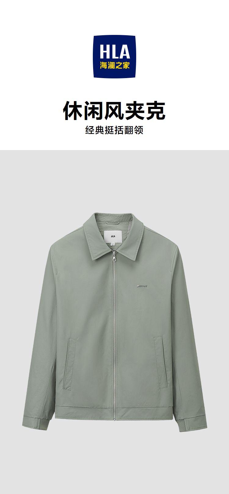 HLA海澜之家休闲风夹克2026春夏新款翻领挺括有型时尚外套男HWJAD1F073A