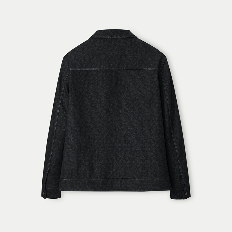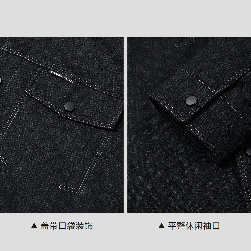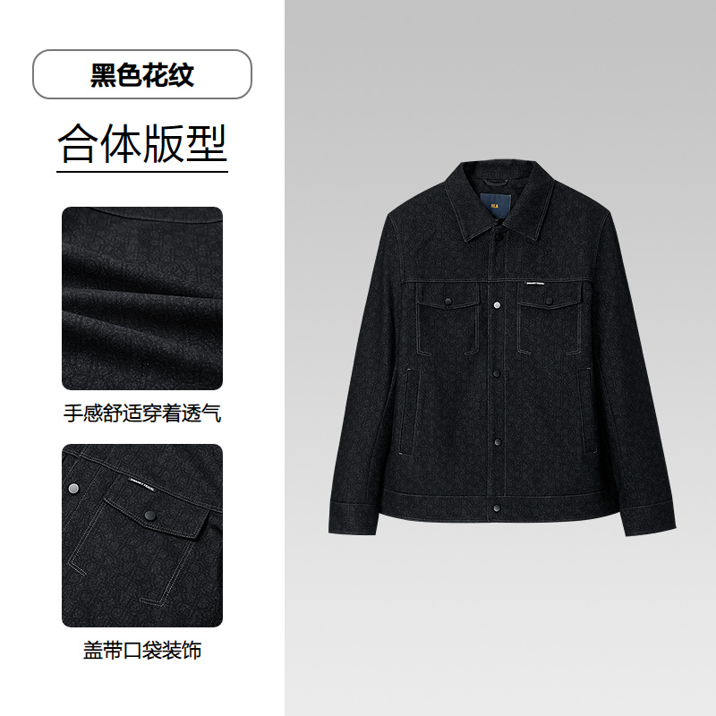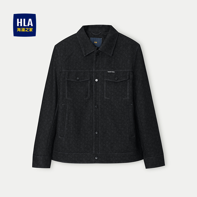 HLA海澜之家时尚花型翻领夹克25秋新款牛仔风按扣门襟休闲外套男HWJAD3J142A