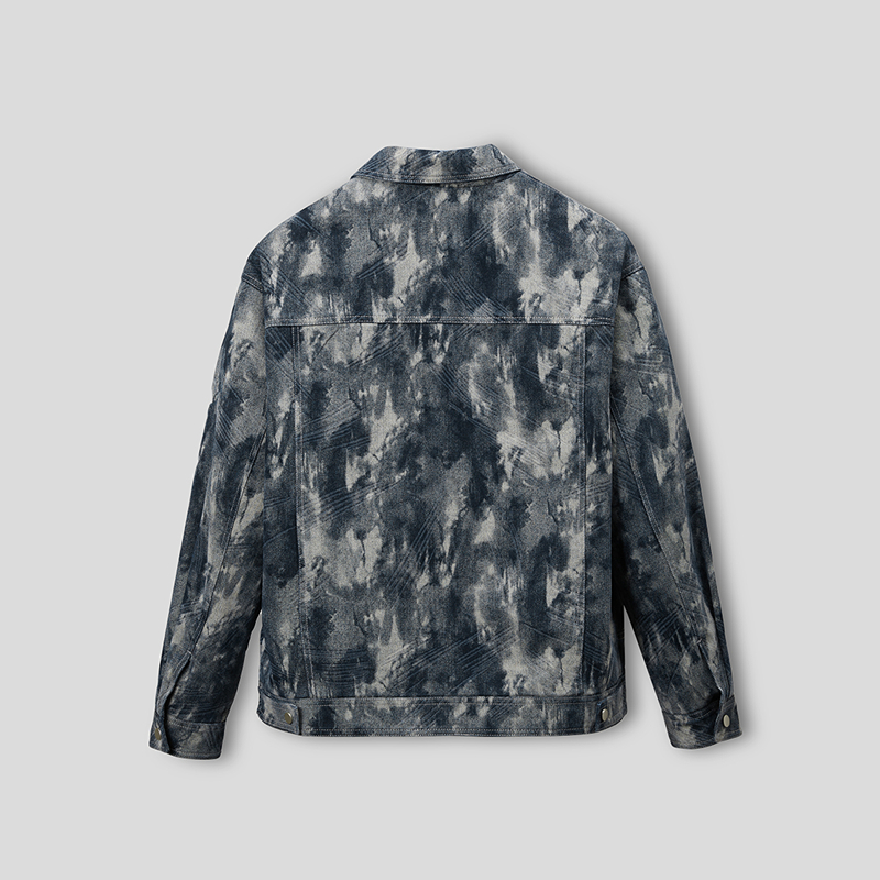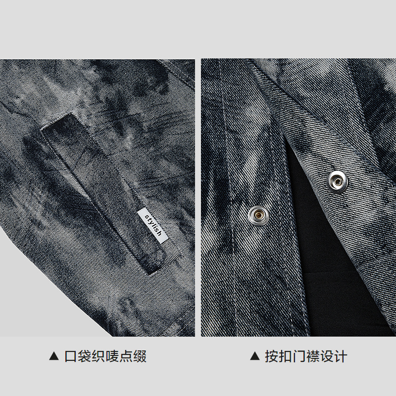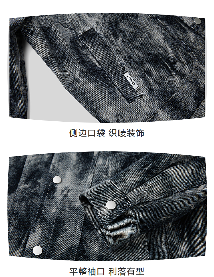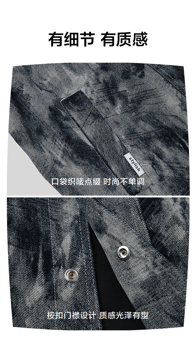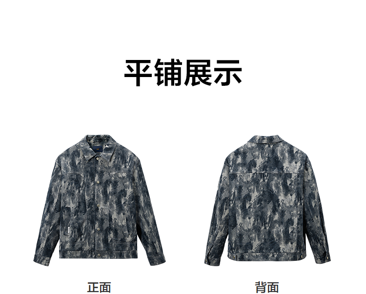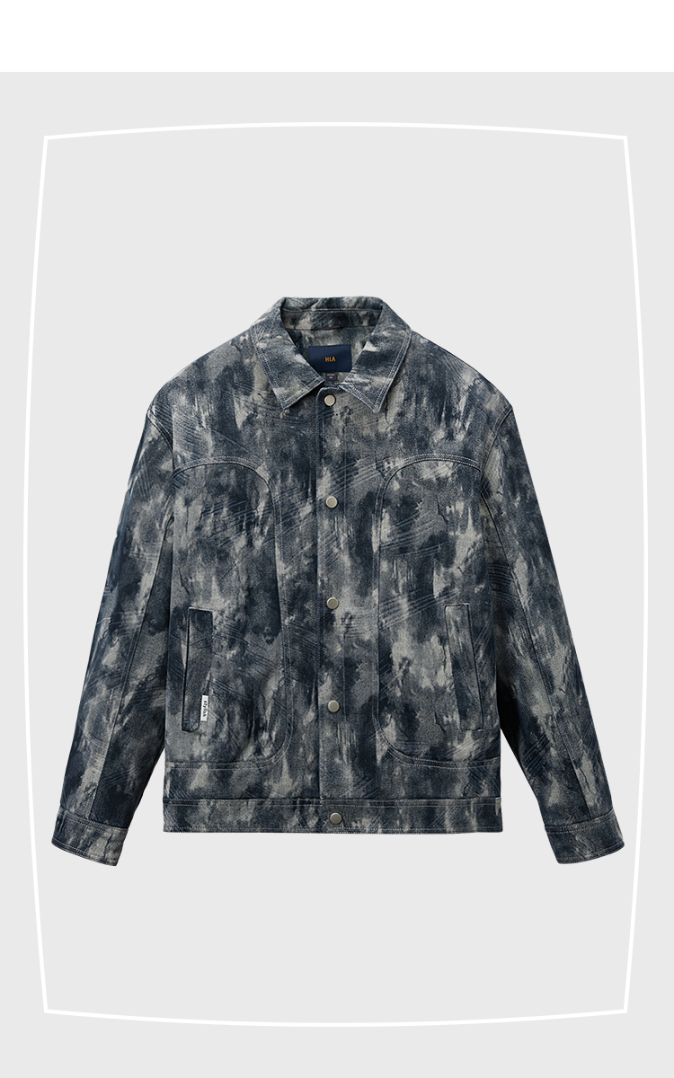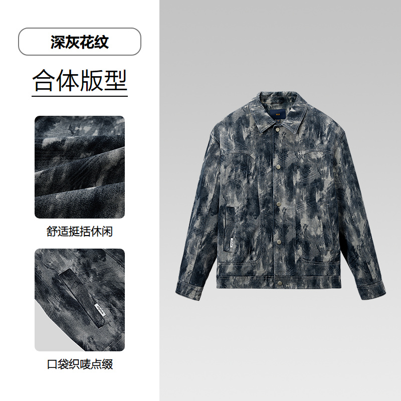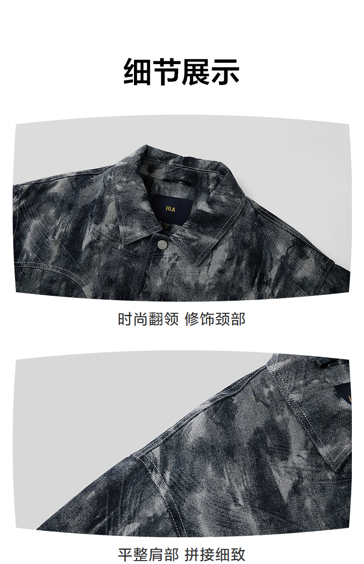 HLA海澜之家曾舜晞同款夹克2025秋季新款翻领时尚花纹牛仔外套男HWJAD3J816A