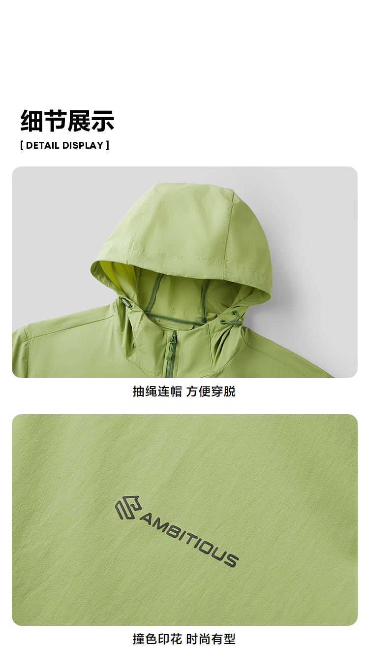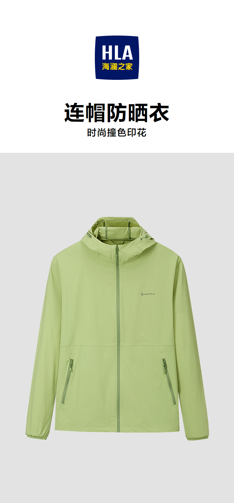 HLA海澜之家防晒科技夹克26春夏新连帽字母印花弹力轻薄防晒衣男HWJAJ2F018A