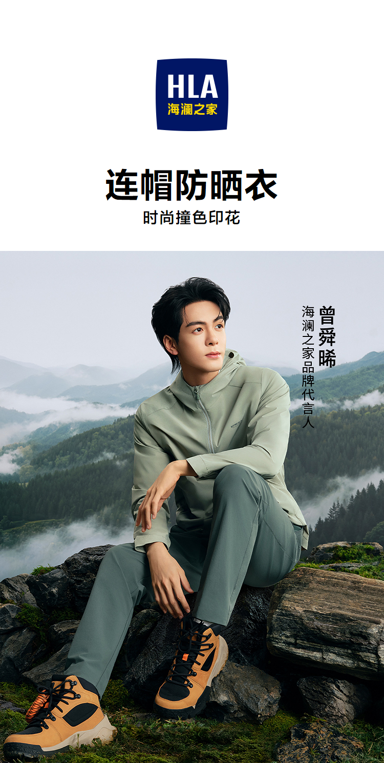 HLA海澜之家曾舜晞同款夹克2026春夏新连帽印花弹力轻薄防晒衣男HWJAJ2F052A
