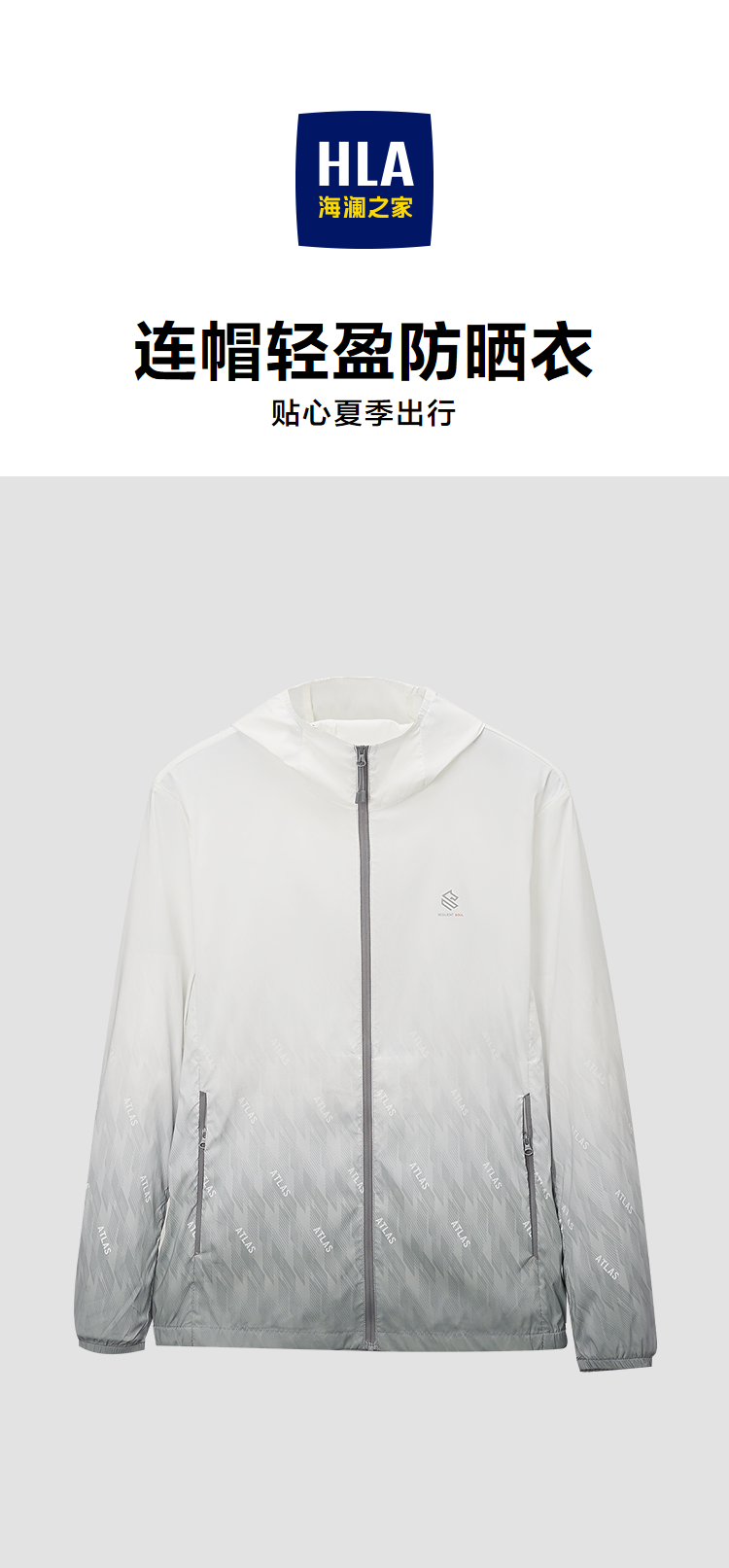 HLA海澜之家连帽夹克2026春夏新款渐变印花轻薄弹力舒适防晒衣男HWJAJ2F077A