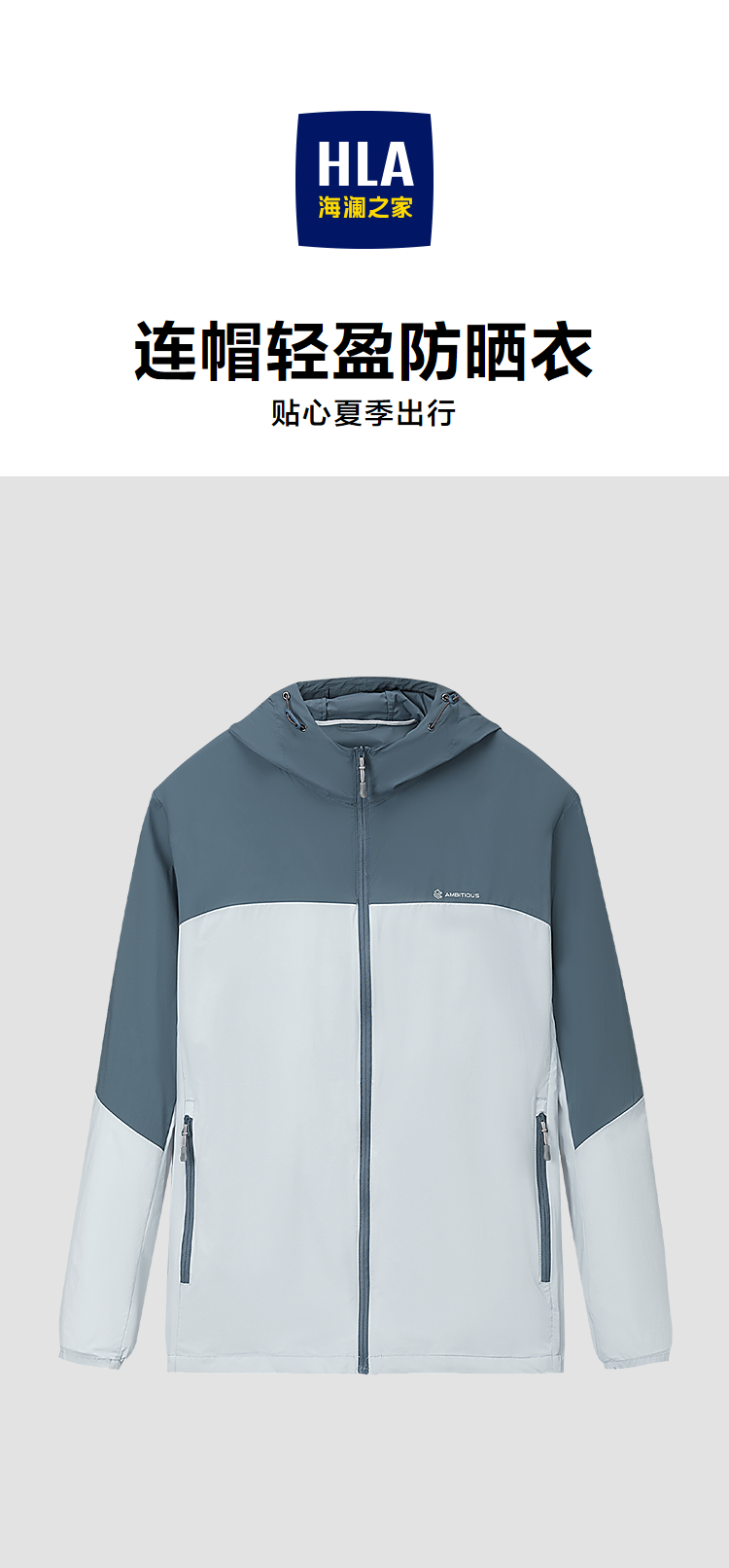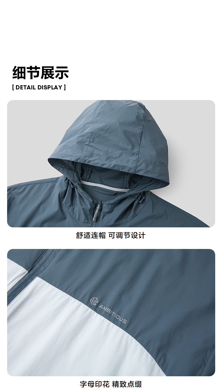 HLA海澜之家连帽夹克2026春夏新款镶拼印花轻薄弹力舒适防晒衣男HWJAJ2F103A