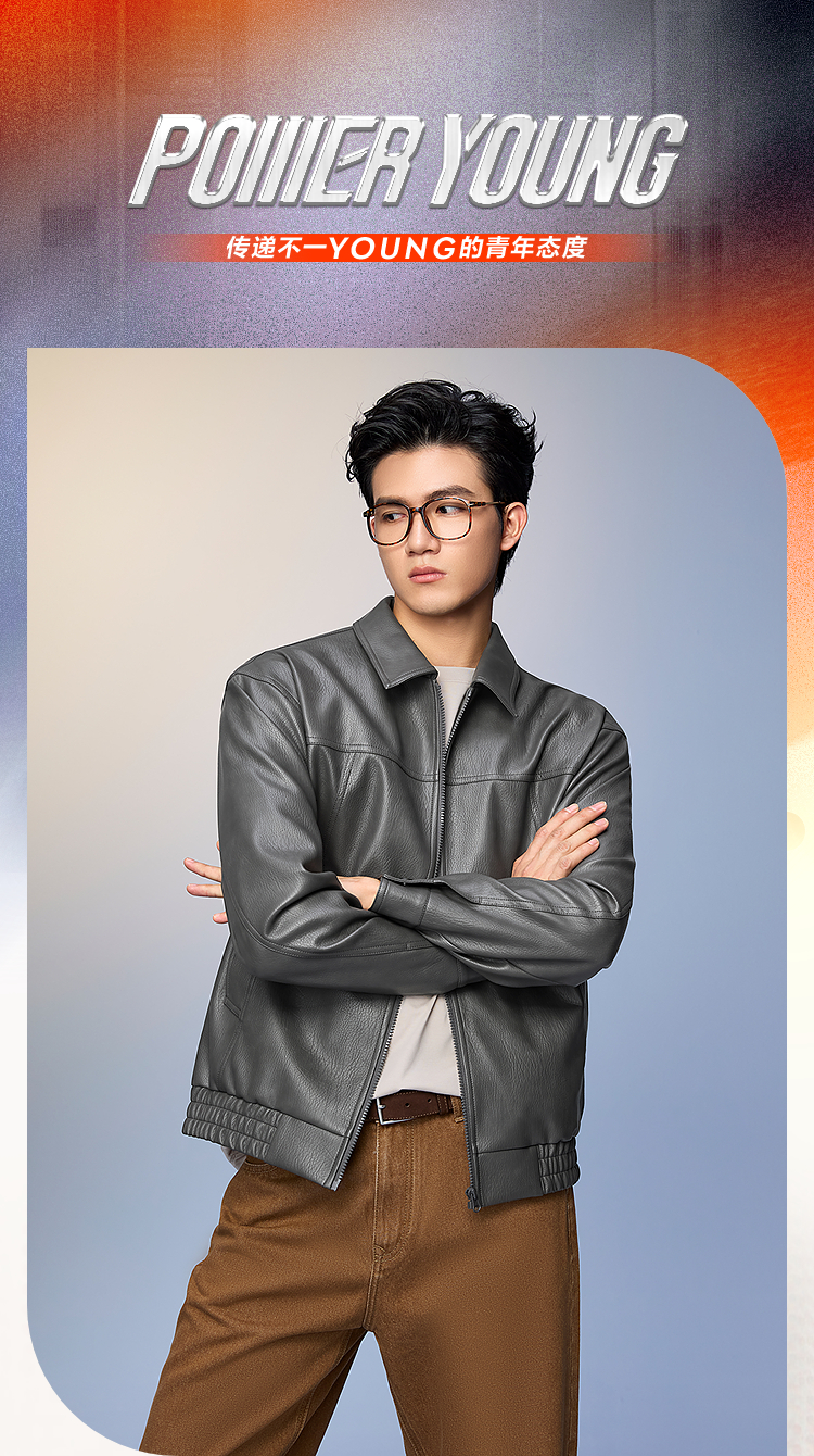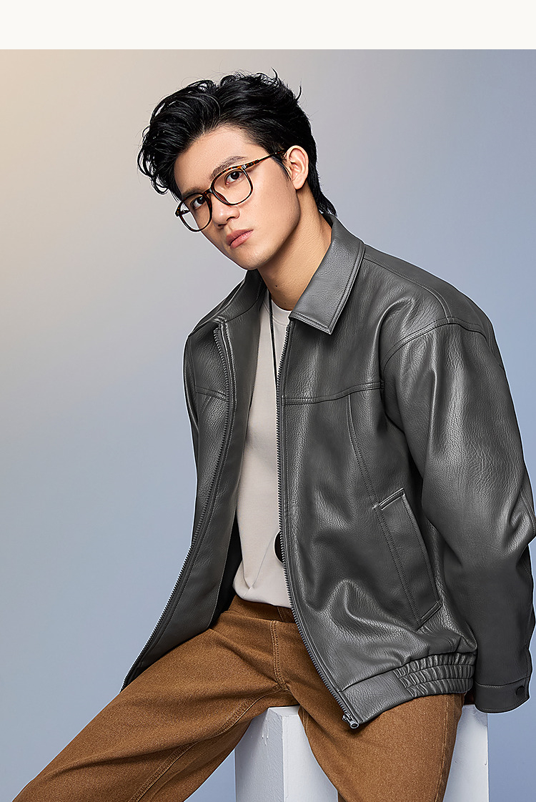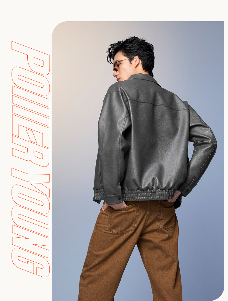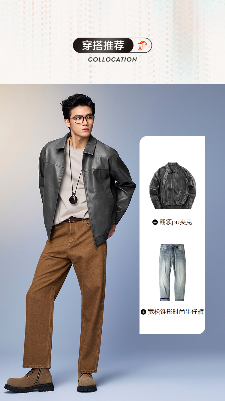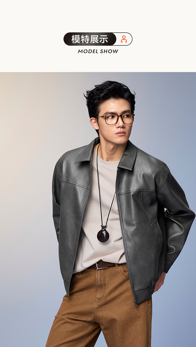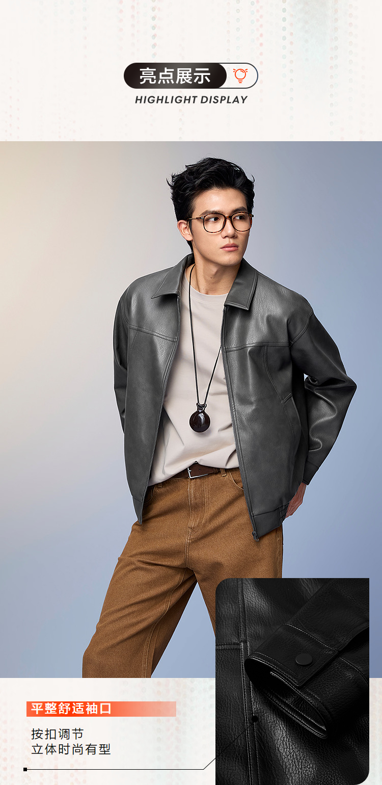 HLA海澜之家POWER YOUNG系列夹克2026春秋新翻领干练PU外套男HWJAW3F053A