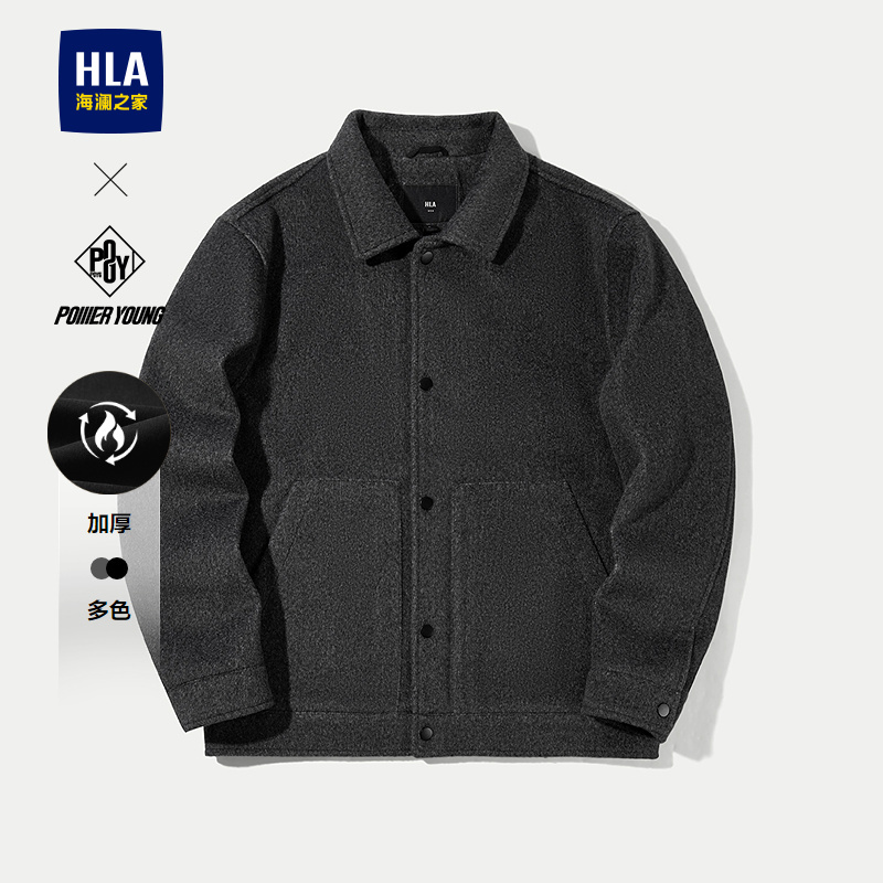 HLA海澜之家POWER YOUNG系列夹克25秋冬新翻领仿毛呢加厚外套男HWJAW4J075A