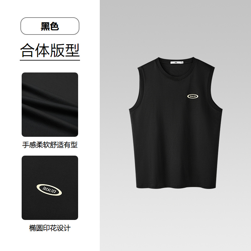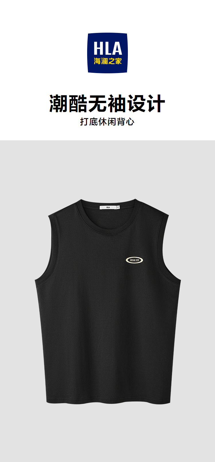 HLA海澜之家无袖休闲背心2026春夏新款圆领微弹潮酷印花打底衫男HWJBJ2F015A