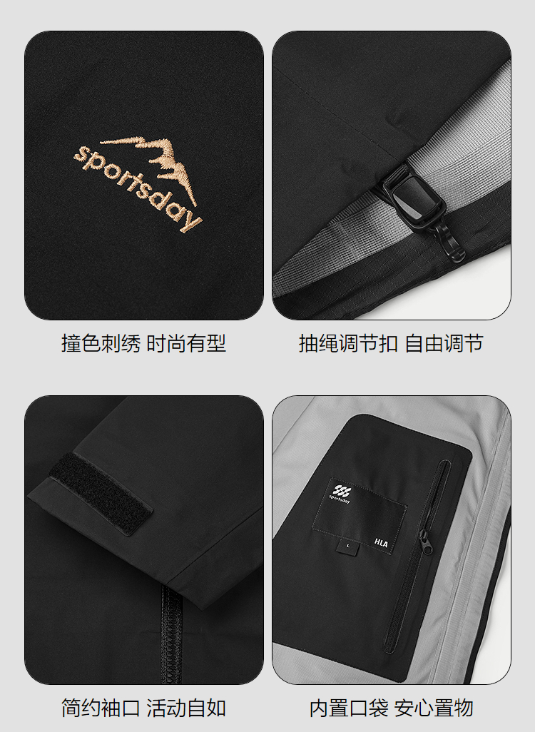HLA海澜之家城市运动sportsday冲锋衣25秋新连帽刺绣防水外套男HWJHW3J002A