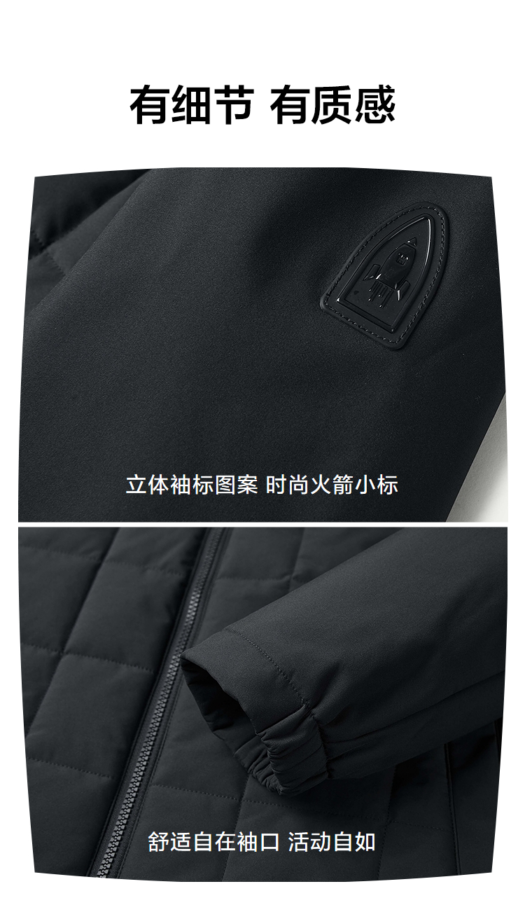 HLA海澜之家动力火箭棉服25秋冬新立领纯色拉链门襟运动外套男HWMAW4J004A