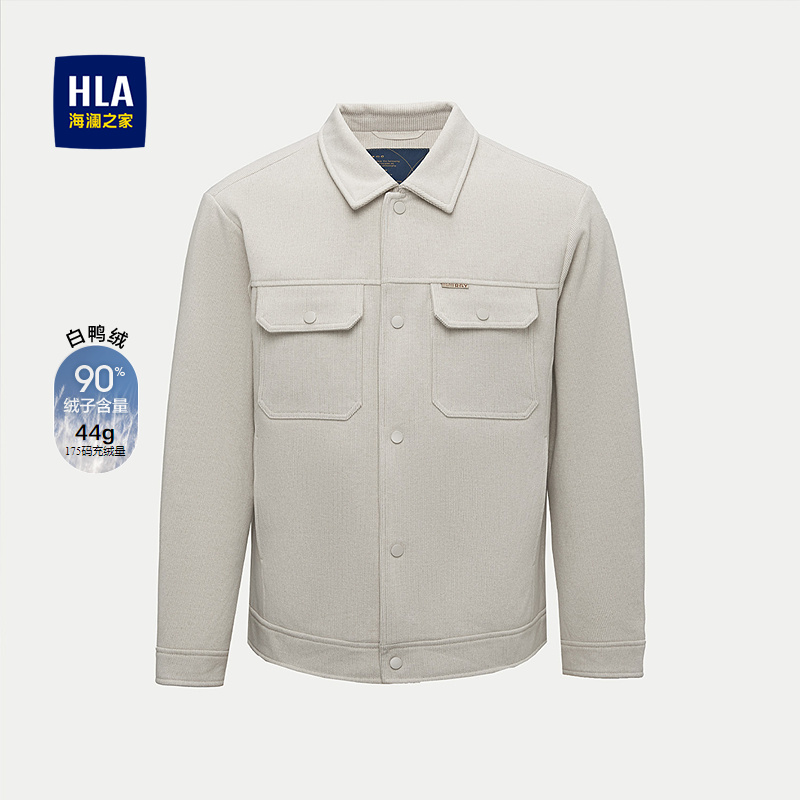 HLA海澜之家保暖鸭绒羽绒服25秋新经典翻领休闲风纯色轻薄外套男HWRAD3J139A