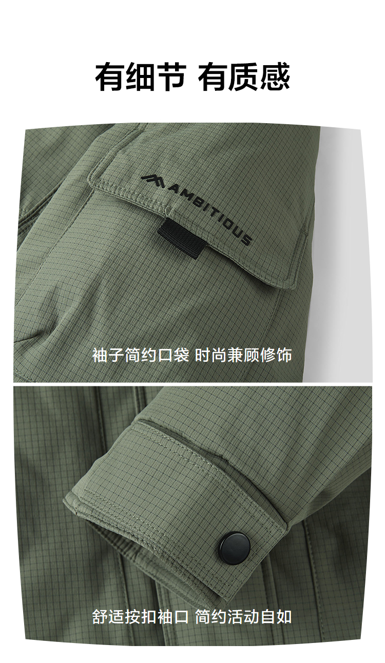 HLA海澜之家休闲羽绒服2025秋冬新款白鸭绒连帽工装保暖外套男HWRAD4J159A
